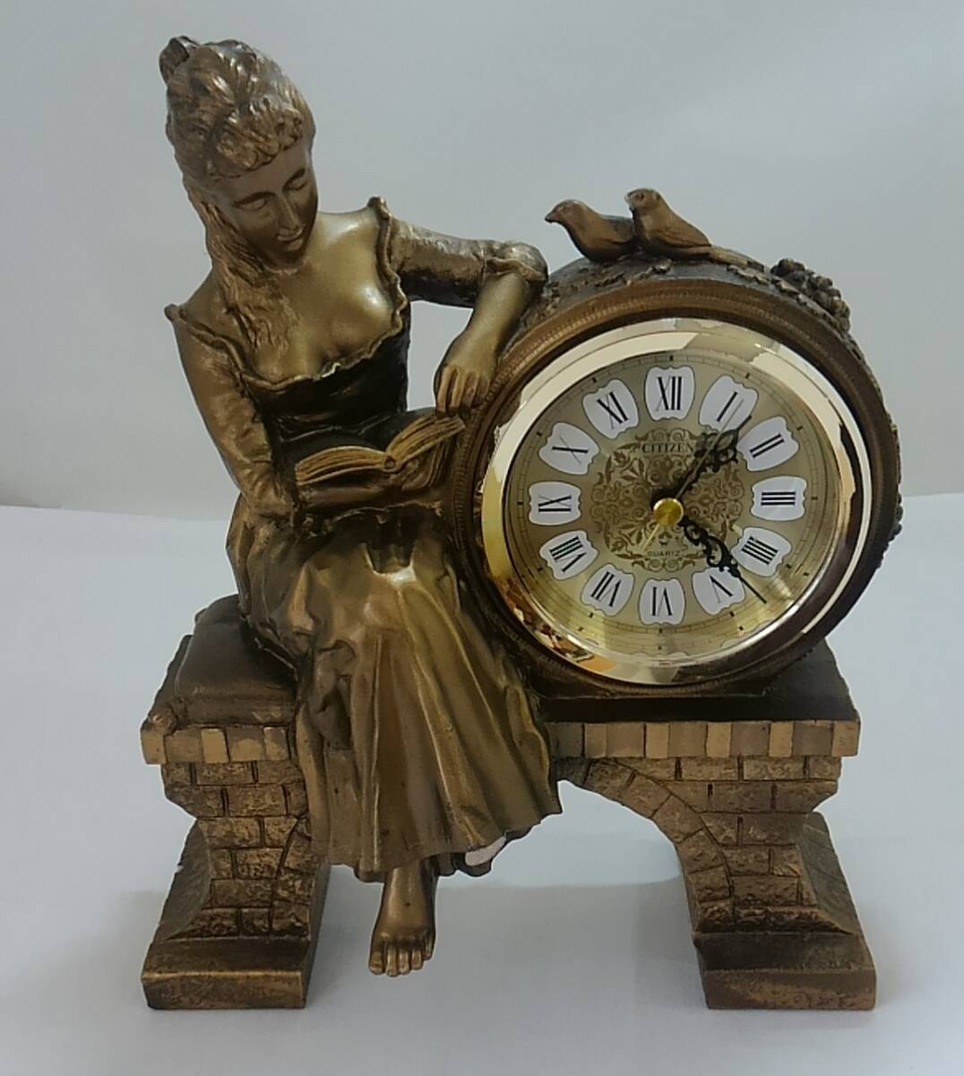 【菊水-461】CITIZEN/シチズン/置き時計/クォーツ/書を読む女性/4RG647N/アンティーク/インテリア/状態難/動作確認済み(YS) |