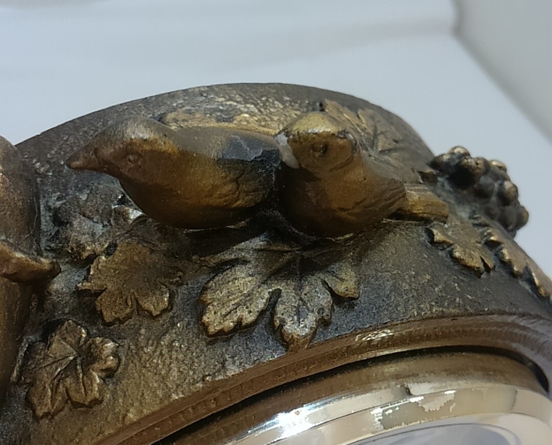 全体的に使用感があり、一部にキズや塗装はがれ、像の右足部分、時計上部の小鳥のくちばし部分が折れて欠損しています。 また、台座部分にも欠けがあります。 時計は動作確認済みです。(単3電池1本) ※電池は付属いたしませんのでご了承ください。 中古品・現状品である事をご理解いただける方のみ、ご入札をお願いいたします。 当社の商品につきましては中古品(または中古扱い)のため 下記の注意事項を合わせてご確認ください。 ※委託品のため詳細が分からない商品もございます。 ※商品説明に明記しておりますが、使用感がある場合がございます。 ※委託品・長期保管品のため、新品・未開封品であっても微細なキズや汚れがある場合がございます。 ※家電は動作確認済みですが全ての機能の長時間動作確認はしておりません。 ※工具や調理器具の実際の作業、調理等での確認はしておりません。 ※商品の写真はなるべく実物に近いものを選んでいますが、PC環境により映り具合や色合いなど見え方が異なる場合もございます。 ※現状でのお渡しのため、商品の状態などの理由による返品、ご返金には応じかねますのでご了承ください。 ※商品が小さな部品、電池等を含む場合は誤飲防止のため、小さなお子様の手の届かないところでのご使用及び保管をお願いいたします。 気になることがありましたらお気軽にご質問ください。 | ||||||||