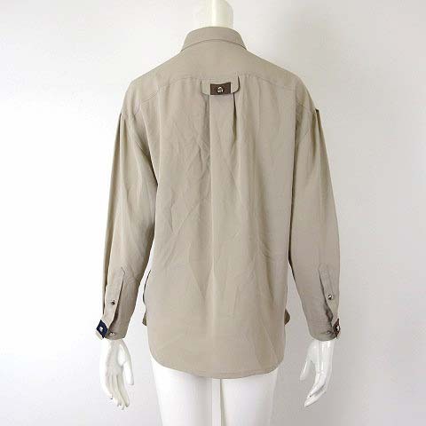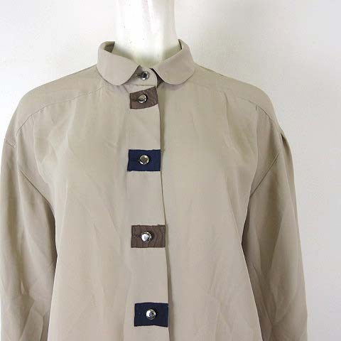レリアン Leilian ブラウス シャツ 長袖 とろみ メタルボタン パッチワーク M グレーベージュ グレージュ レディース
