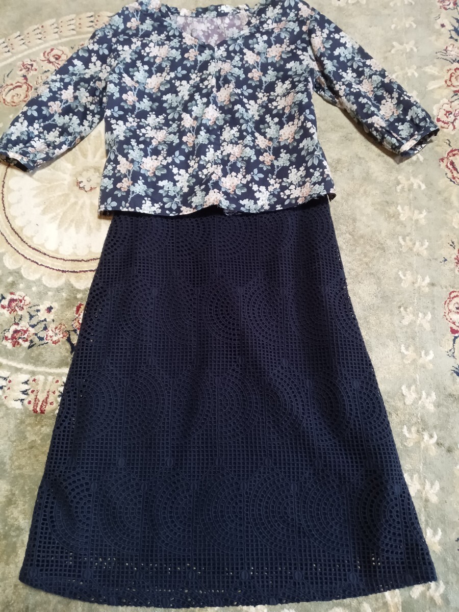 mizuiro ind ミズイロインド 総レース Aライン スカート 濃紺色 ダークネイビー (М) 日本製