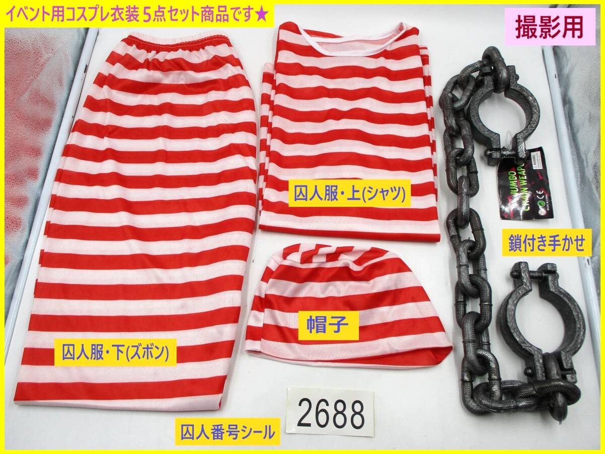 | 「訳あり」扱いの イベント向けのコスプレ衣装セット、 未使用品です。 倉庫での長期保存品です。 気になさる方はご遠慮ください。 コスプレ用 囚人服(長袖・長ズボン)・ 帽子・囚人番号シール・ プラスチック製の鎖付き手かせ 5点セット商品です。 *当方出品の [囚人服セット][大きい 鎖付き手かせ]を 単品でお求めになるより 少々お得な価格設定です 画像1(TOP画)~画像9は 参考として 撮影用を使用しています。 画像10は今回お送りするお品を 撮影しています。 あらかじめご了承ください。 以下の商品説明をよくご覧になってから、 ご検討をお願い致します。 神経質な方、完品をご希望の方は、 御入札をご遠慮ください。 【商品内容】 イベント向けのコスプレ衣装 5点セット ・男女兼用 ・フリーサイズ(標準体型) 《参考製品サイズ》 *個々のお品で多少の差異あり ☆囚人服セット [囚人服・上着] 着丈(後ろ身ごろの首から裾) 約 67cm 身幅(両脇の下の幅) 約 52cm 袖丈(脇の下縫い目から袖口) 約 45cm 首回り周囲寸法 約49cm *首回り周囲寸法が タイトな作りのお品のようです (参考:画像5) 生地は多少伸びますが 頭部サイズ(頭囲)によりましては 着用時に きつく感じられる場合があります あらかじめご了承ください [ズボン] 総丈(腰ゴムより裾) 約 107cm 股下丈(また下縫い目から裾) 約 73cm 裾幅 約 16cm 腰ゴム部横幅 約 31cm(+ゴムの伸縮分) [帽子] 画像6の状態で、 横幅 約 26cm・高さ 約 18cm [その他] ・海外製/メーカー等の詳細は 不明 ・囚人番号シール 1枚 付属 ・素材:ポリエステル ・極薄(ペラペラ)の生地になります ご使用の際には 下に透けてもいいインナー・Tシャツ等を 着用することをお勧めします また 耐久力は あまり期待できません ☆鎖付き手かせ 商品名: 「JUMBO CHAIN WEAPON」 ・プラスチック製 ・サイズ 全長 約 97cm (測り方により多少の差異あり) チェーン1個の大きさ 約 7.5×4.5(cm) 手かせ部/外径 約 9.5cm・内径 約 7.5cm ・重量 約 150g ・中国製 *トップ画像・画像3・4(正面・背面)は 成人女性型マネキンに着せたイメージです 参考にどうぞ *セット内容・状態等は画像にてご確認下さい *実際の商品の色味とは異なる場合があります *「参考製品サイズ」は 数点の製品を採寸した寸法の平均値です 実際にお送りするお品の寸法とは 多少の差異がある場合があります 【状態等】 ・未使用品です。 専用のパッケージ等の外装は、ありません。 ・海外製につき、商品には、 糸のほつれ・縫製の粗さ(囚人服セット)、 紙タグの折れ・色あせ・スレ・キズ(手かせ) 等の傷みがある場合があります。 また、長期保存品につき、 汚れ・シワなどがある場合があります。 美品・完品をご希望の方はご遠慮ください。 ・保管中、もしくは、配送中などに、 「手かせ・鎖」パーツのつなぎ目が 外れてしまう場合がありますが、 差し込んでいただければ簡単に直せます。 (参考:画像9) 【補足】 長期保存品、及び、 小さく折りたたんでいるため、 シワ・折れ目が見られます。 画像にてご確認ください。 (発送時の状態 画像10) 以上の点より、 「訳あり」扱いとして出品いたします。 ご承知いただける方のみ、 ノークレーム・ノーリターンにて ご検討ください。 | ||