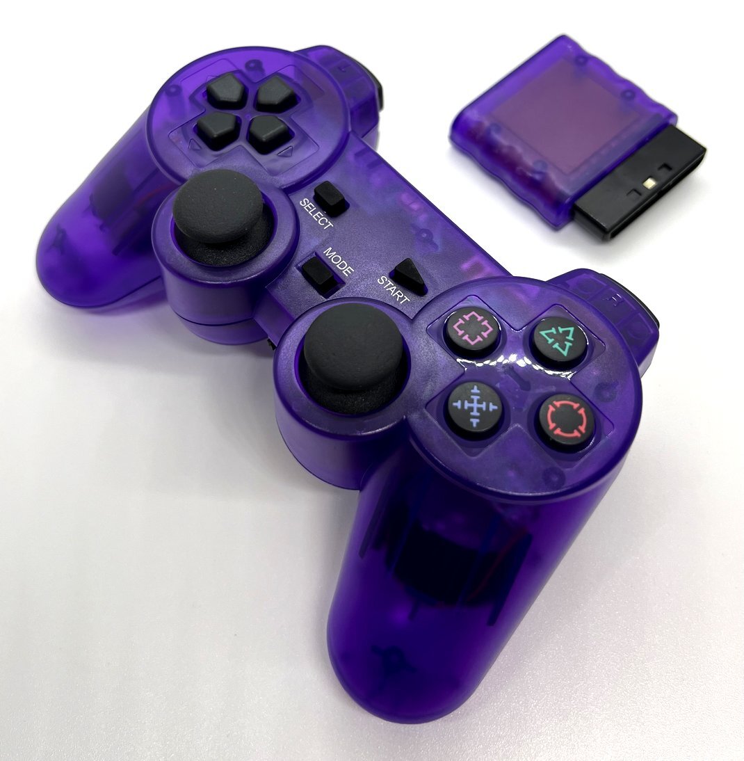 PS1/PS2用のワイヤレスコントローラーです。振動機能も搭載されております。PS2本体のコントローラー端子にレシーバーを取り付けて、コントローラー側のスイッチをONにするだけで、使用可能です。パソコン用のPS2変換アダプタでも動作確認しております。複数個の同時使用も可能です。 |