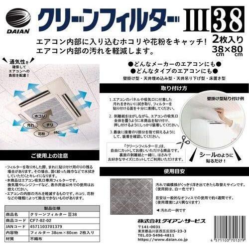 商品名 | クリーンフィルターIII 38(2枚入り)CF7-02-02 家庭用 エアコン用フィルター 花粉 ホコリ ウィルス 貼るだけ |