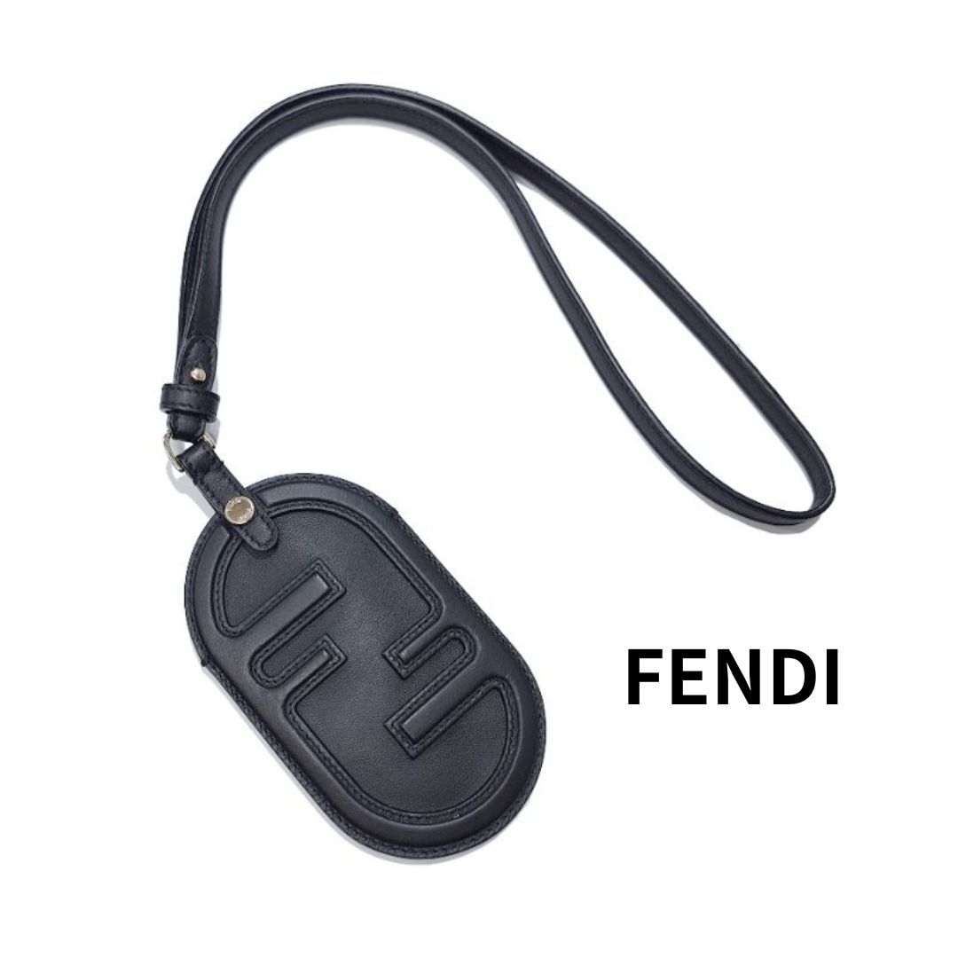 「FENDI フェンディ バッチホルダー カードホルダー パスケース ネックストラップ バッグチャーム ダブルエフ FFロゴ 8M0475 レザー ブラック 黒」です。