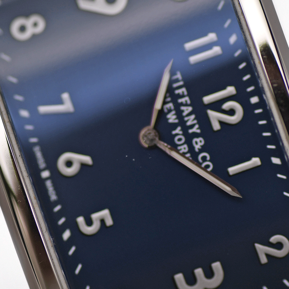当店の専属時計修理業者にて研磨仕上げ済み。ガラスに極々小さなものですが、小キズ有り(画像5枚目参照)。また、針の中央辺りに若干の腐食がございます。共に使用上気になることはないかと思います。販売から年数は経っておりますが、レザーストラップのコンディションも良好ですので、使用回数は少ない印象です。 1940年代のトラベルクロックから着想を得て作られた『イーストウエスト』。ひと目見たら忘れられない横向きに配された文字盤が特徴です。時計作りの常識をくつがえすクリエイティブかつ大胆なデザインとなっております。 |