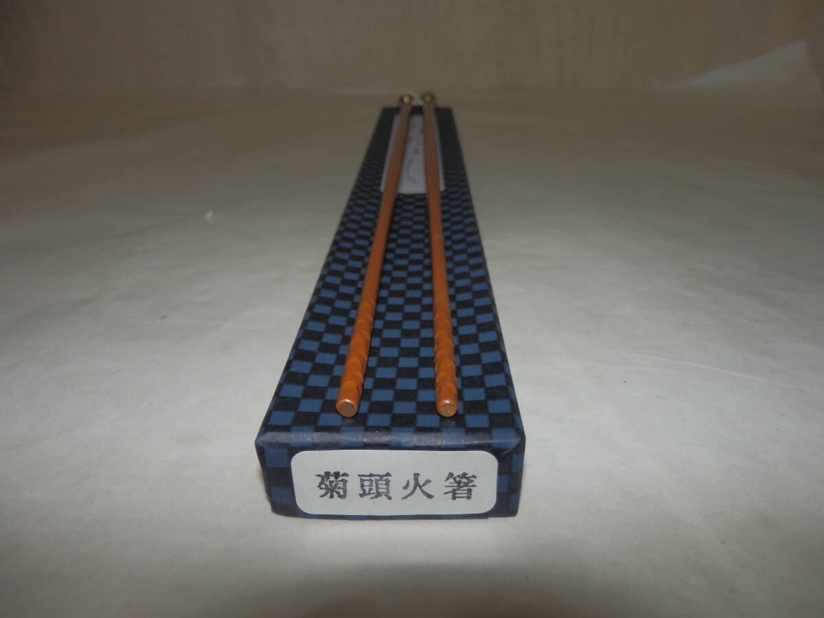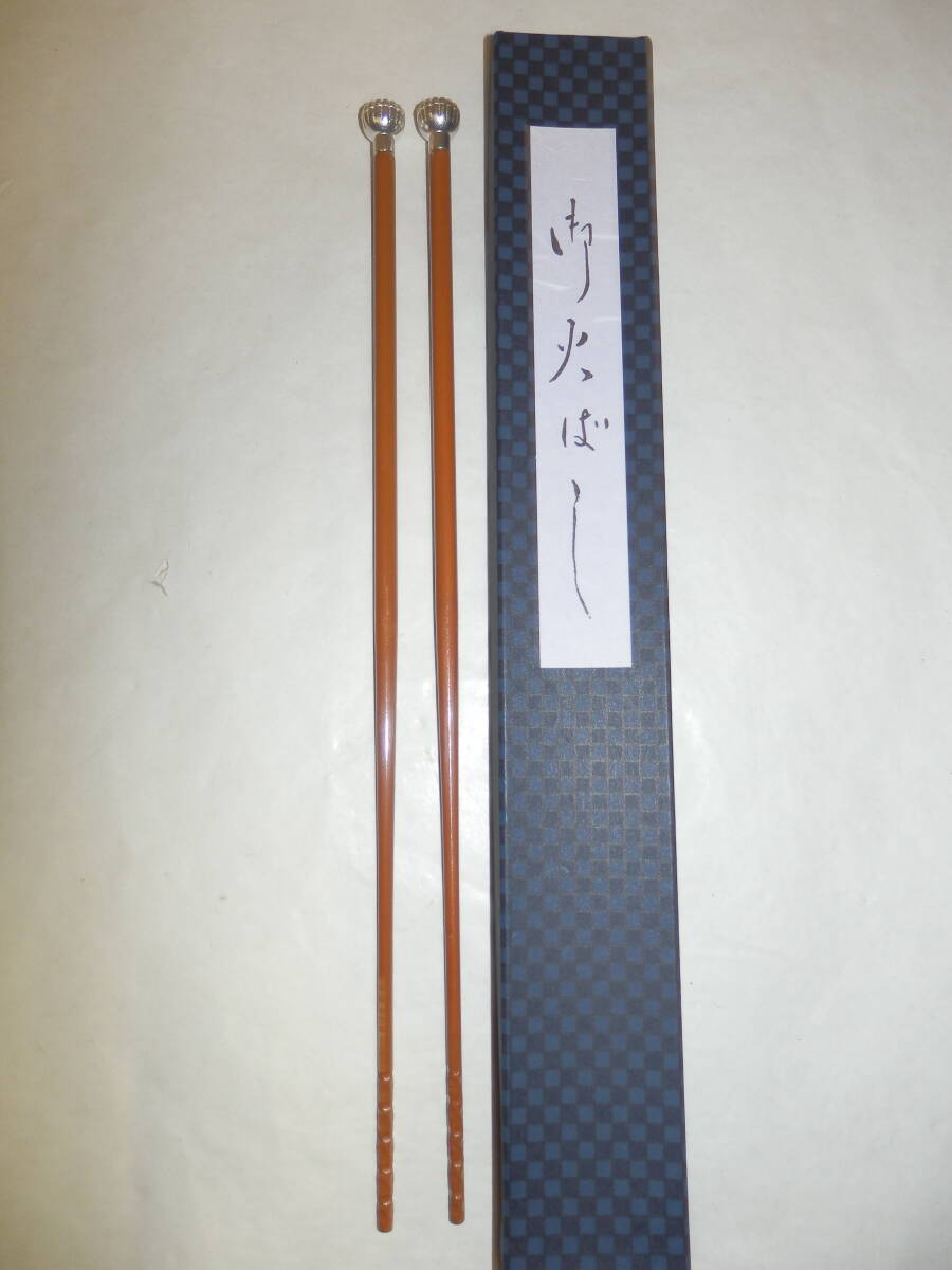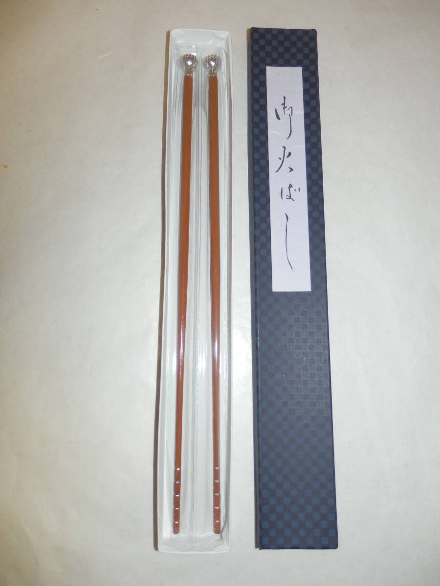 「新品・茶道具」 唐銅製の飾火箸です。 菊頭です。 長さ約29cm 化粧箱。 どうぞ宜しく。
