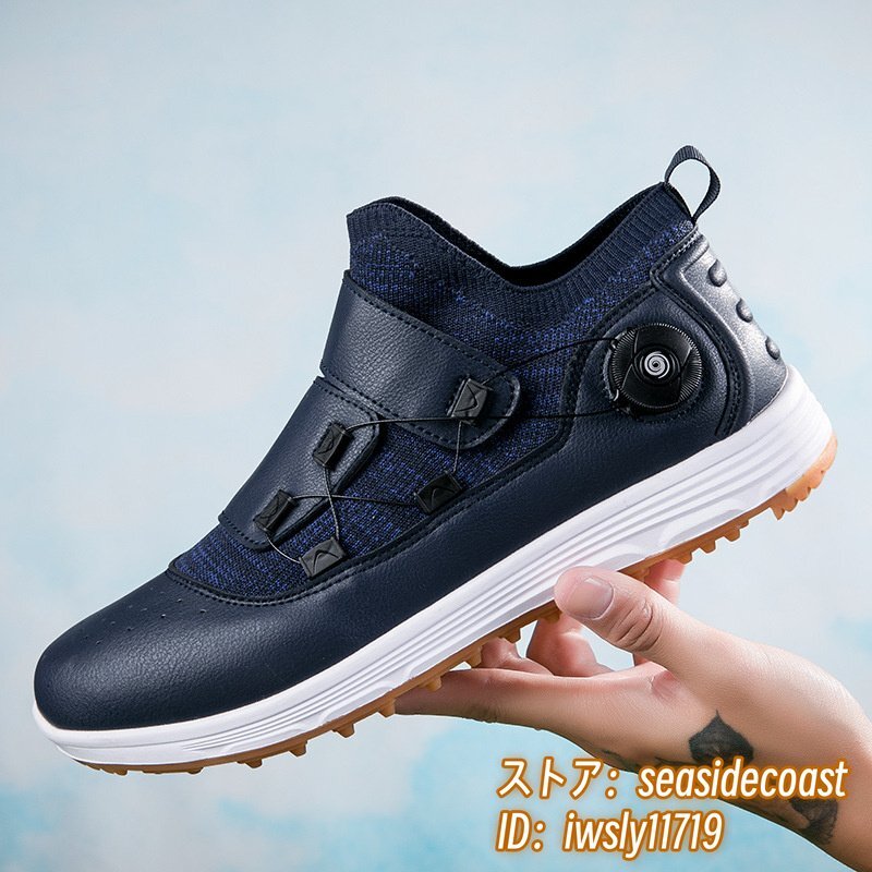 高級品 ゴルフシューズ 強いグリップ 新品ダイヤル式 運動靴 フィット感 軽量スポーツシューズ 弾力性 通気性 防滑 ネイビー 27.5cm