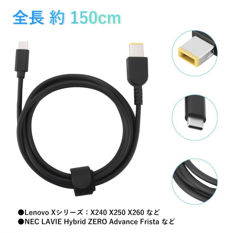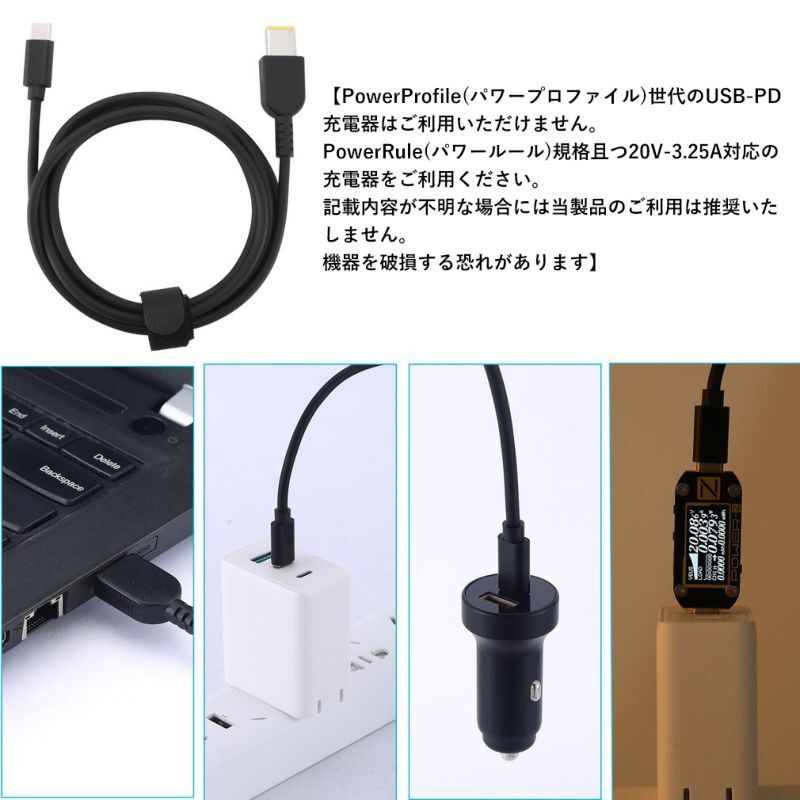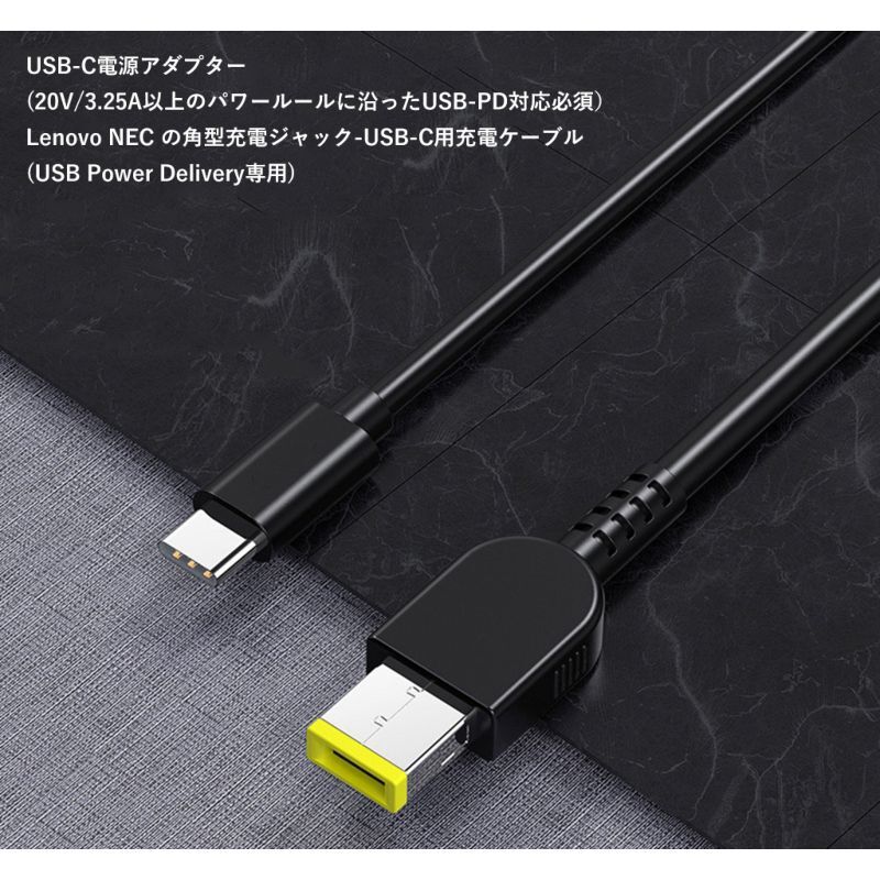 USB-C電源アダプター(20V/3.25A以上のパワールールに沿ったUSB-PD対応必須)Lenovo NEC の角型充電ジャック-USB-C用充電ケーブル(USB Power Delivery専用) 【PowerProfile(パワープロファイル)世代のUSB-PD充電器はご利用いただけません。PowerRule(パワールール)規格且つ20V-3.25A対応の充電器をご利用ください。記載内容が不明な場合には当製品のご利用は推奨いたしません。機器を破損する恐れがあります】