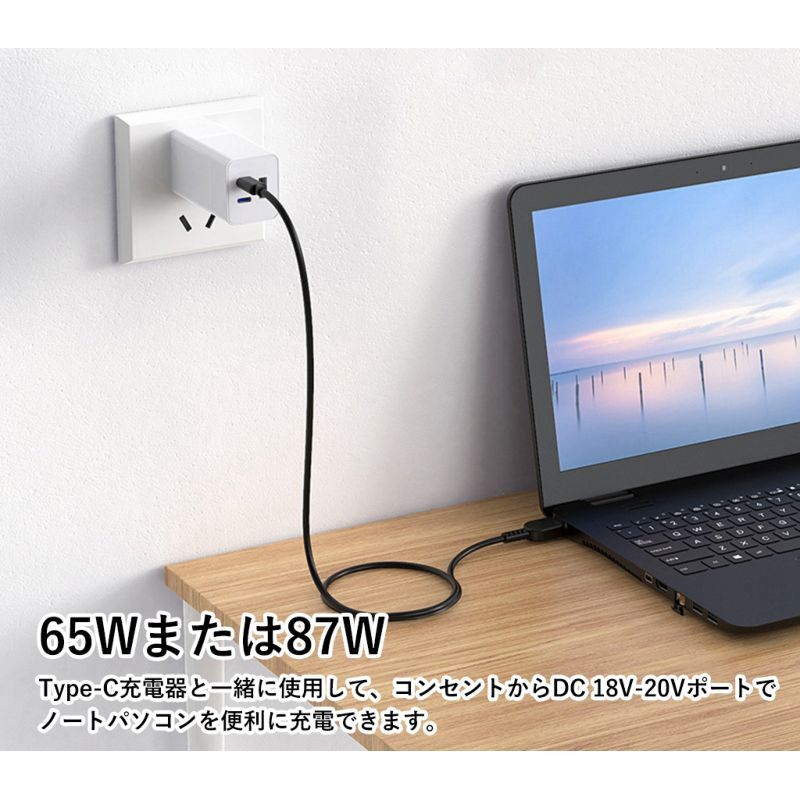 65Wまたは87W Type-C充電器と一緒に使用して、コンセントからDC 18V-20Vポートでノートパソコンを便利に充電できます