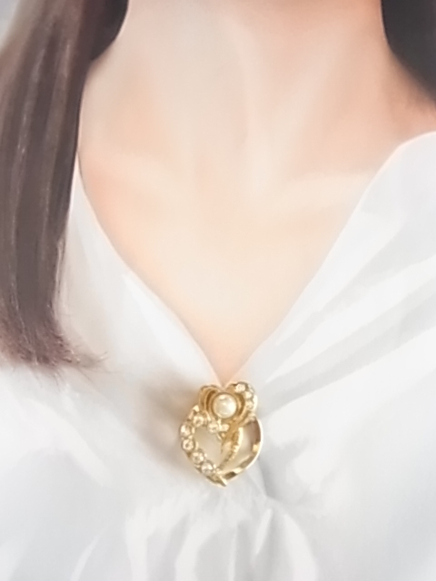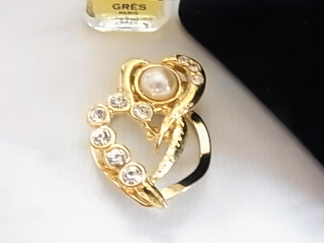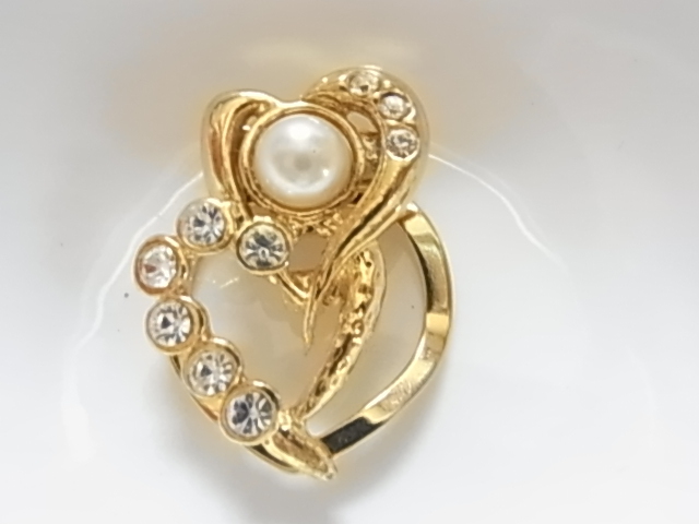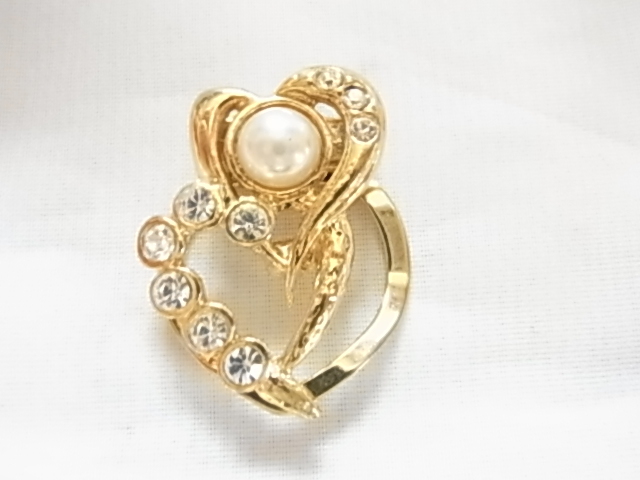 ビンテージ/ヴィンテージ クリアラインストーンとfakeパールが輝くビジュー ゴールドトーンが豪華感 煌めく スカーフクリップ★