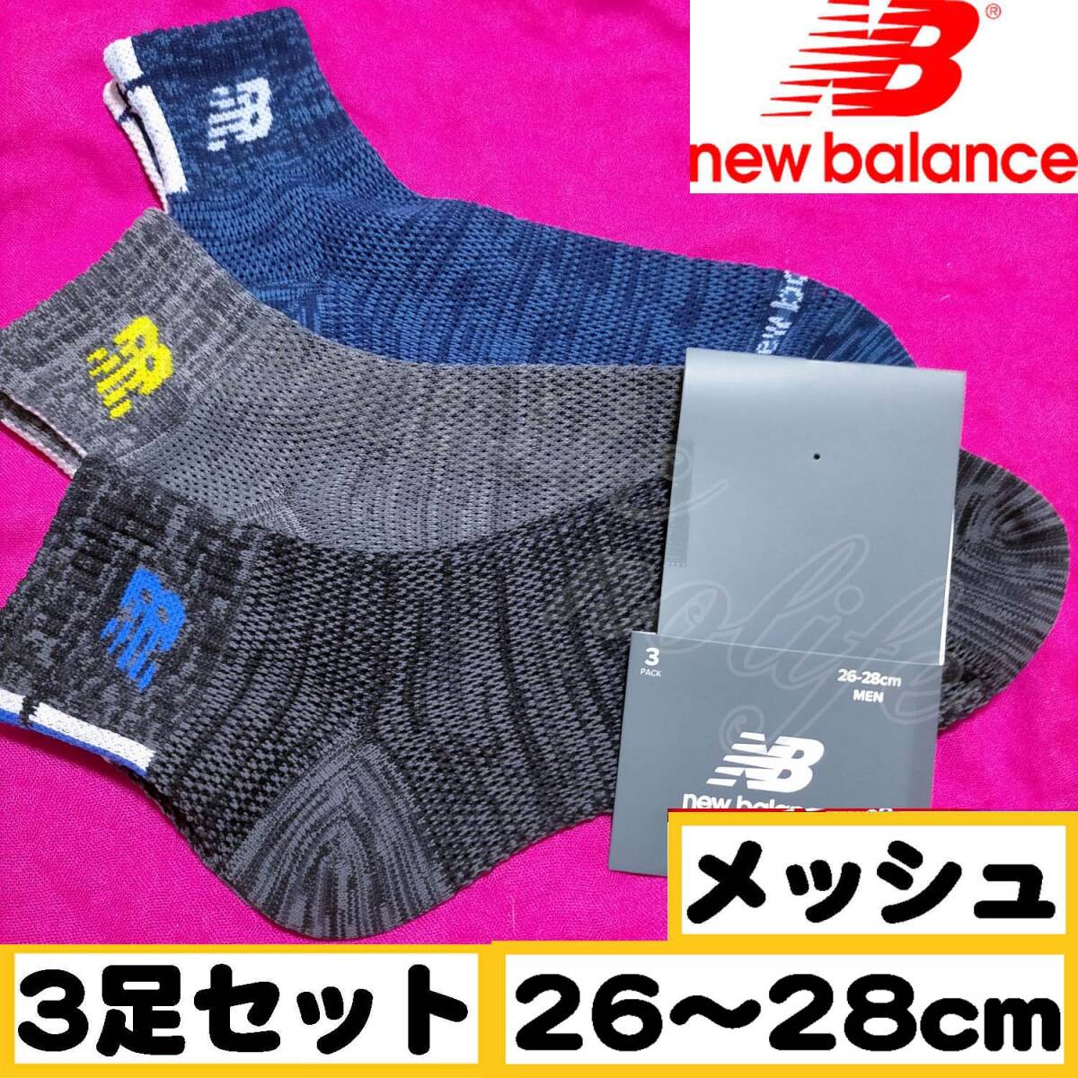 【メンズ New Balance】メッシュ スニーカーソックス 靴下 3足セット 26~28cm【足首V】
