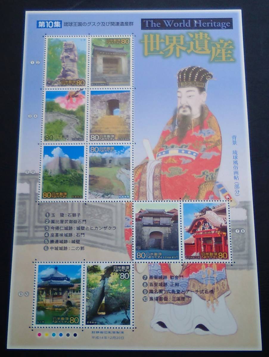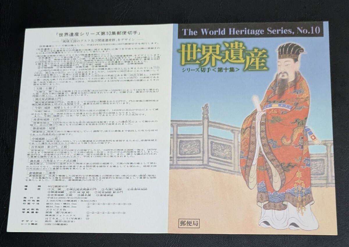 2002年・記念切手-第2次世界遺産シリーズ第10集(琉球王国のグスク及び関連遺産群)解説書付シート
