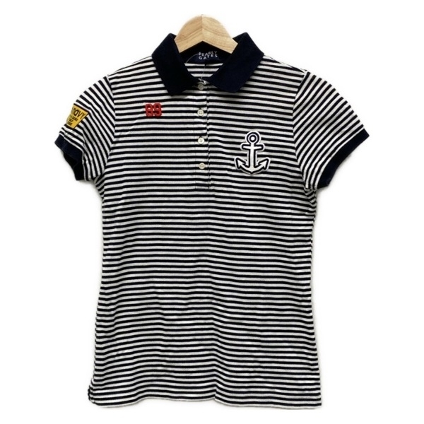 パーリーゲイツ PEARLY GATES 半袖ポロシャツ サイズ0 XS - 白×黒×マルチ レディース ボーダー/刺繍 美品 トップス