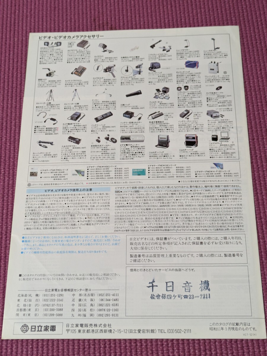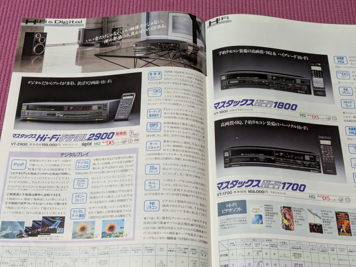 日立のビデオ、マスタックスの総合カタログです。1989年9月版。カラー6ページ。
