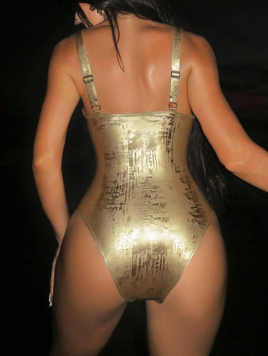 レディース 水着 ワンピース ビーチホリデー、夏用の女性用ホロー メタルリング グロス ワンピース水着