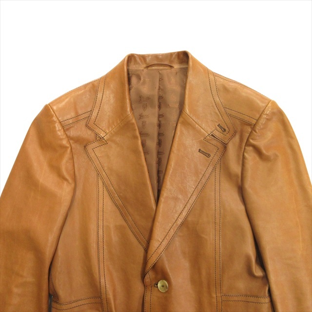 グッチ GUCCI by TOM FORD トムフォード期 レザー テーラード ジャケット ブレザー 牛革 カウ オールド アーカイブ 50 茶 ブラウン メンズ
