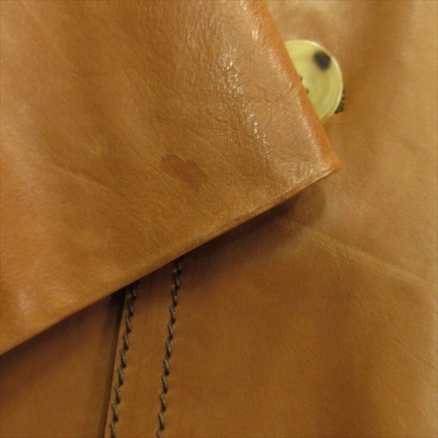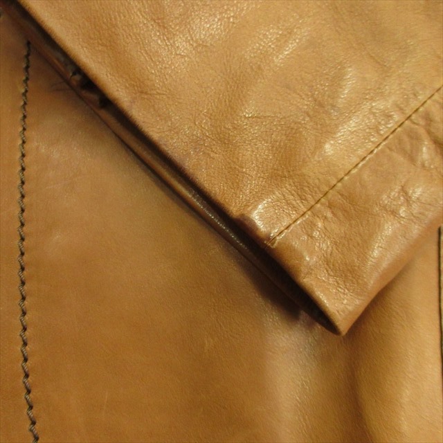 【状態】袖先にシミ、脇に汚れ、全体的にレザー特有のキズ、擦れ、若干使用感はありますが、その他に目立ったダメージはなく、問題なくご使用いただける商品です ※あくまでも中古品ですので掲載写真や記載内容をご確認いただき、ご理解の上ご購入ください。