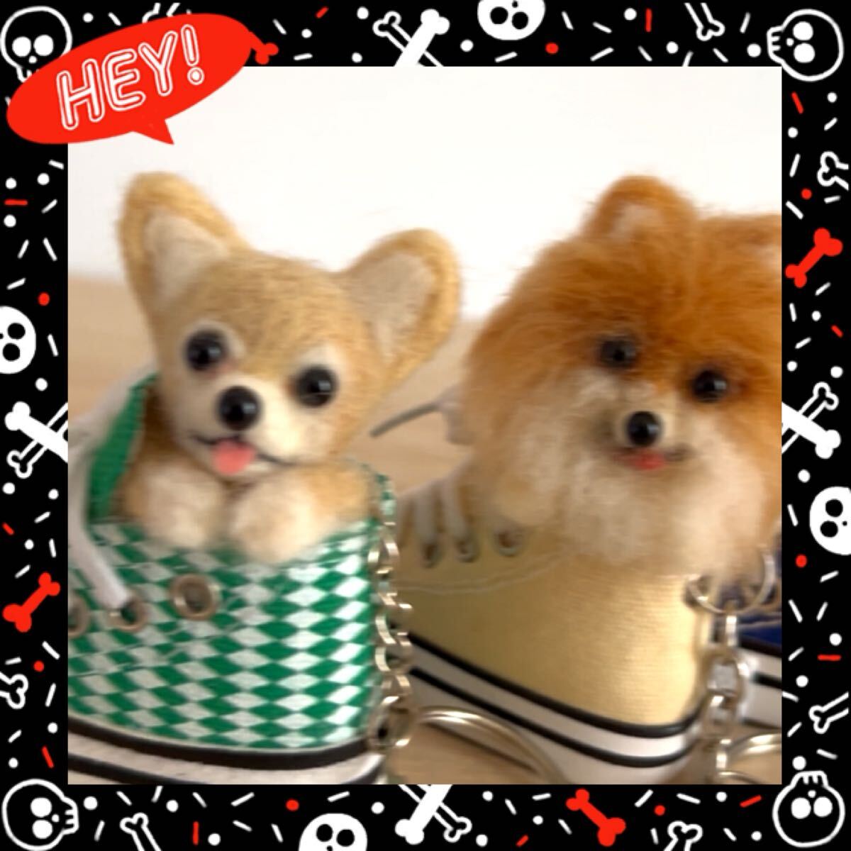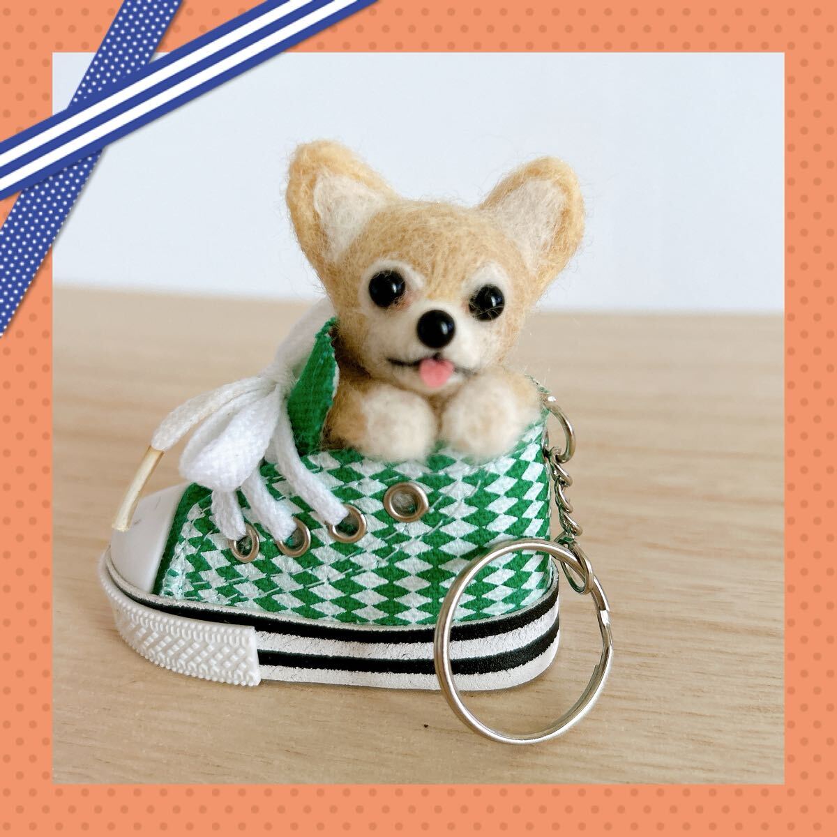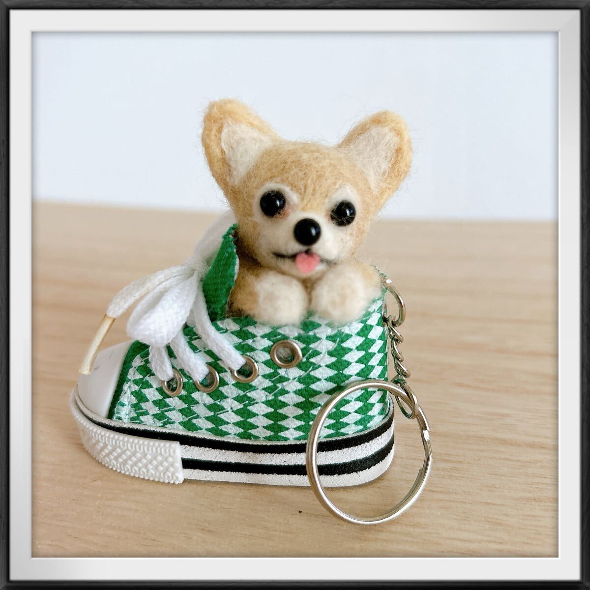 ハンドメイド 羊毛フェルト クリーム チワワ スニーカー キーホルダー マスコット ぬいぐるみ 犬 雑貨 癒しグッズ ペットロス ギフト