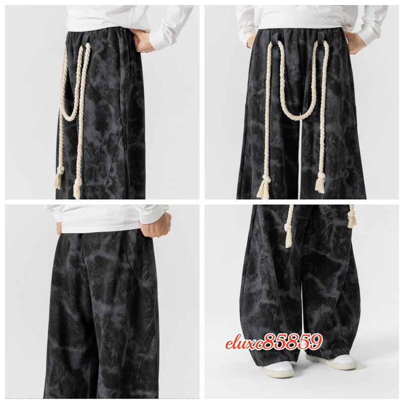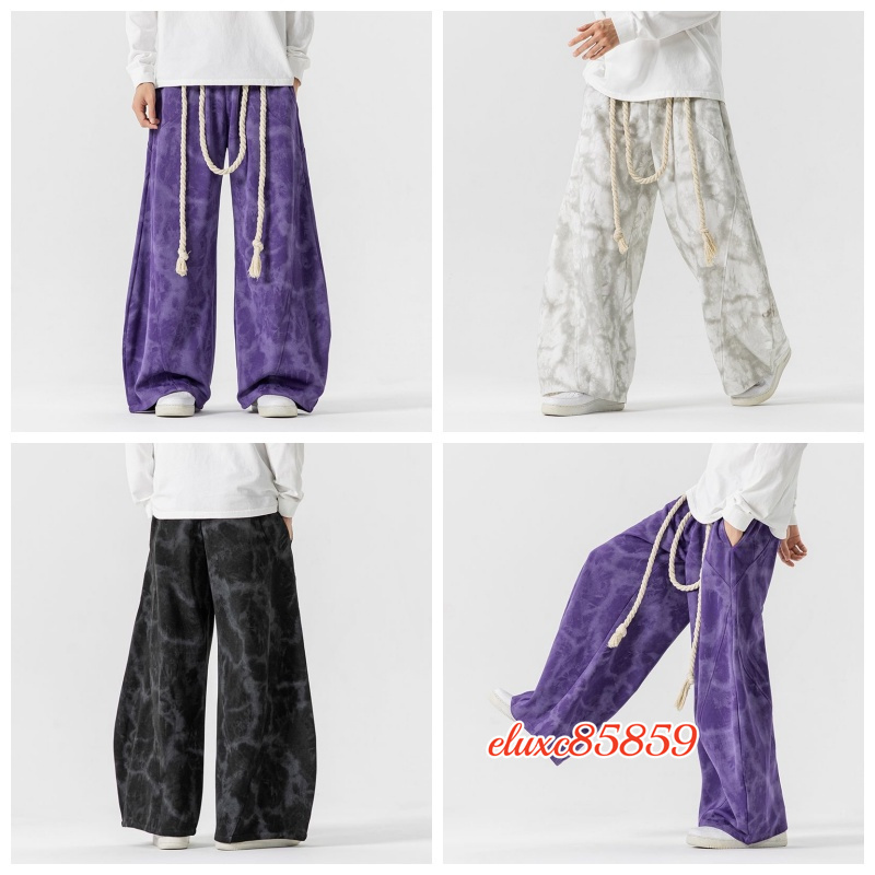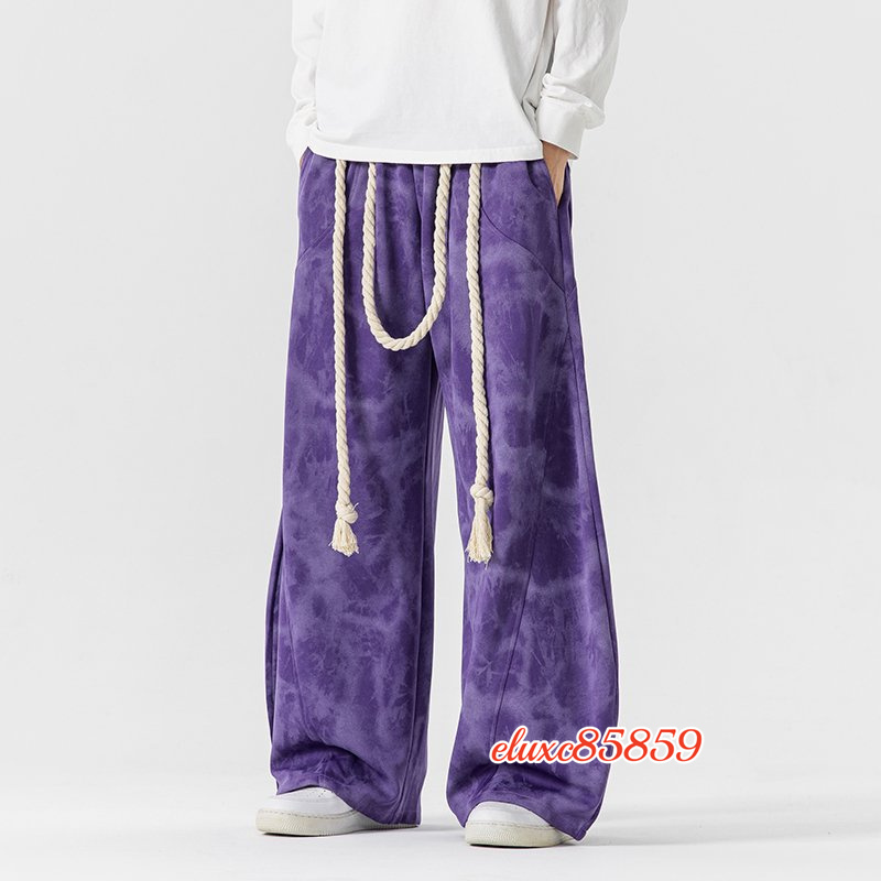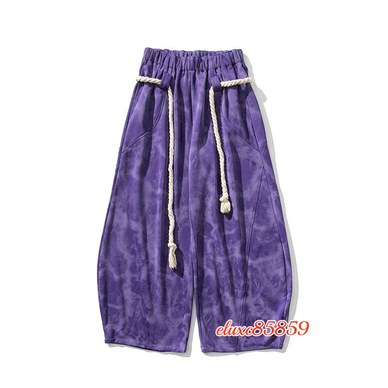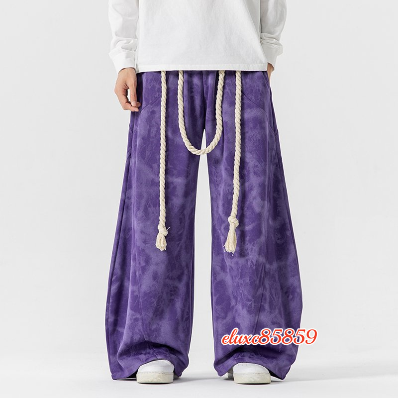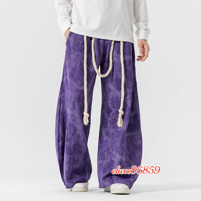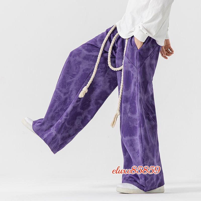 秋冬新品 メンズ サルエルパンツ タイダイ ワイドパンツ ジョガーパンツ ユニセックス 太紐 抽ひもデザイン サイズ選択可能L 紫