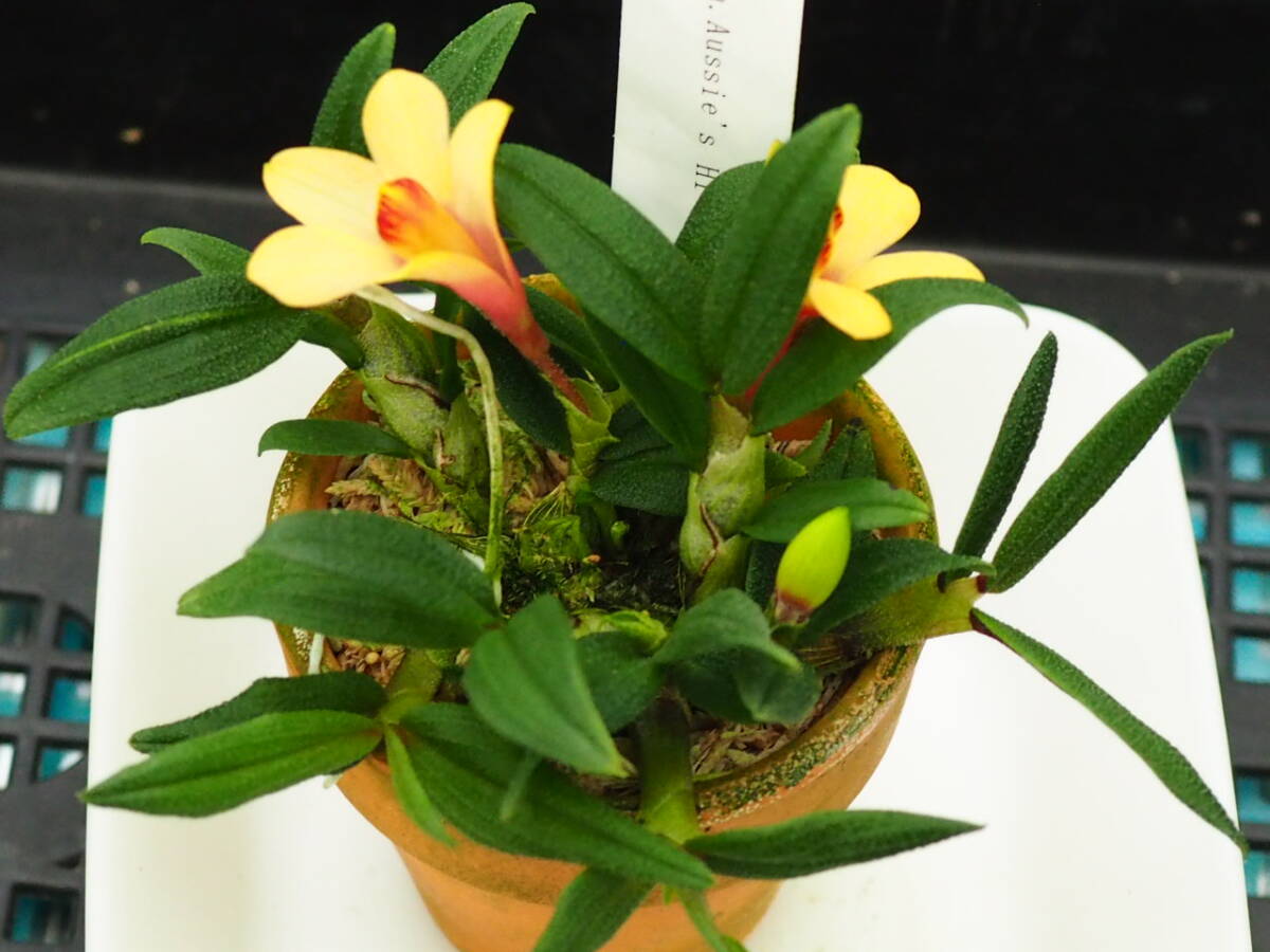 09/10 Den.Aussie's Hi-Lo(red-yellow bicolor) ★耐暑性有★ 開花中 デンドロビューム 洋蘭 テラリウム パルダリウム ビバリウム