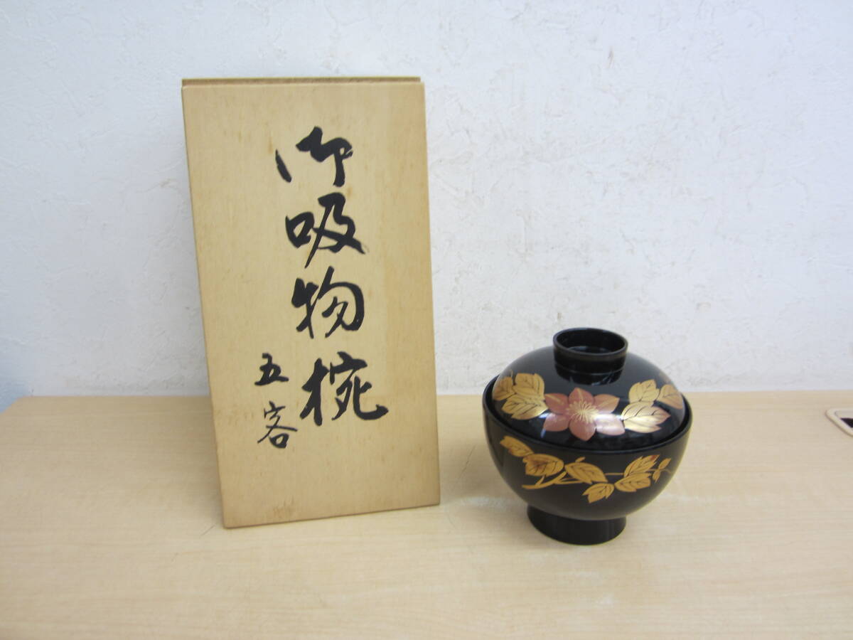 | 【71695】◆未使用 天然木加工品 黒千鳥吸碗 鉄仙 5客 直径約12㎝ |