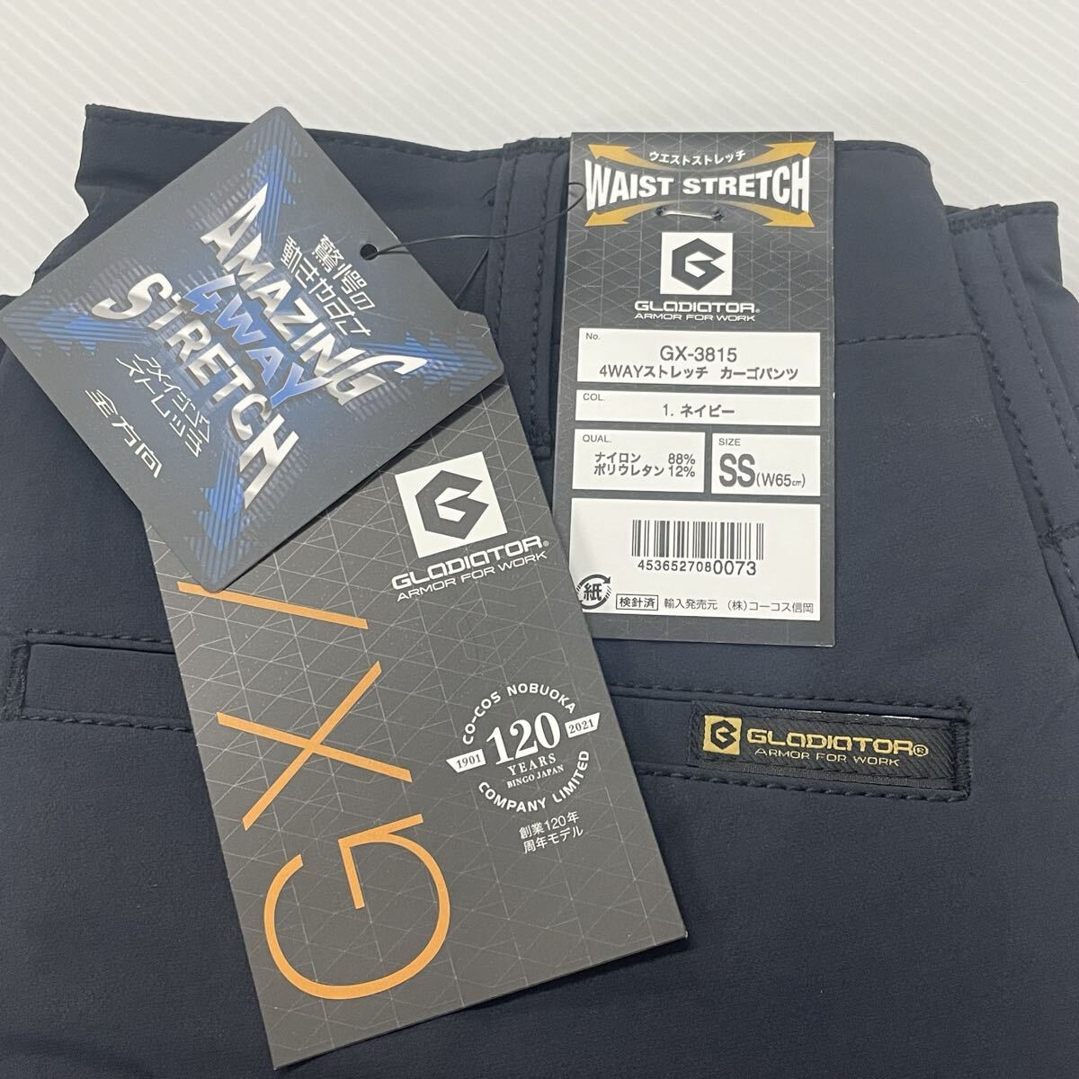 新品64473 グラディエーターGLADIATOR GX-3815 ネイビー SSサイズ 4WAY ストレッチカーゴパンツ 作業服 ワークパンツ コーコス信岡