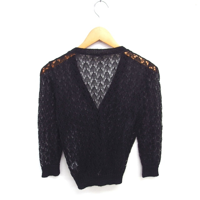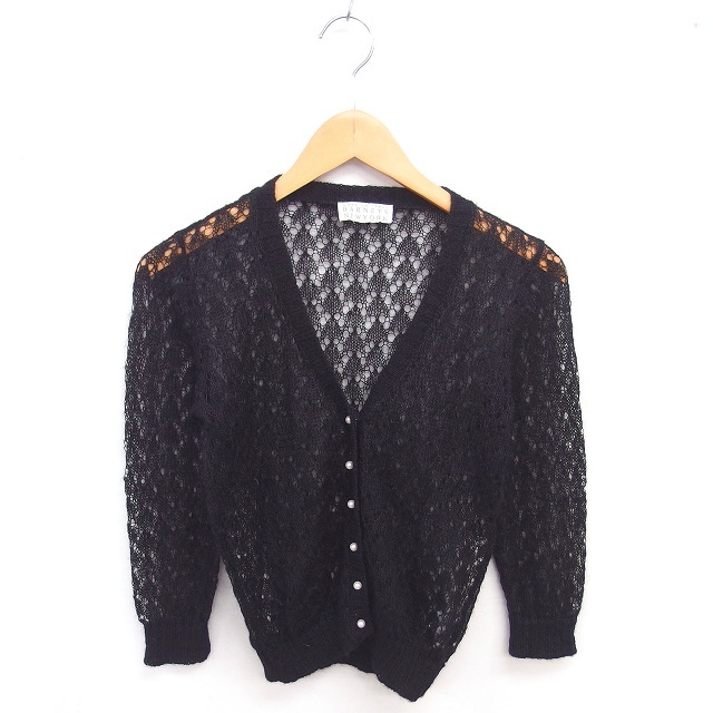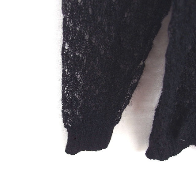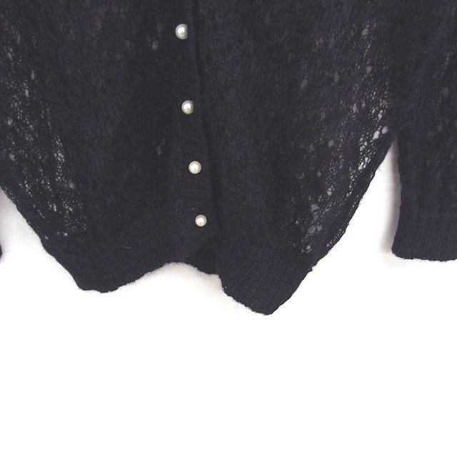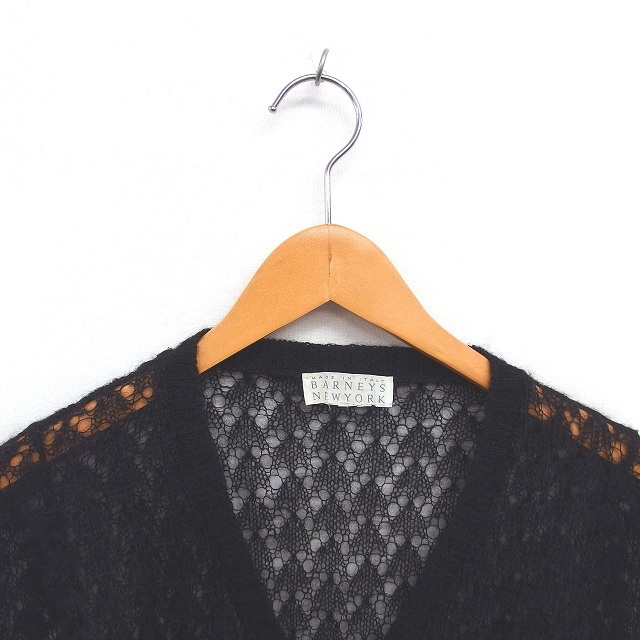 バーニーズニューヨーク BARNEYS NEW YORK カーディガン ニット 透け編み モヘヤ ウール混 長袖 黒 ブラック /TT レディース