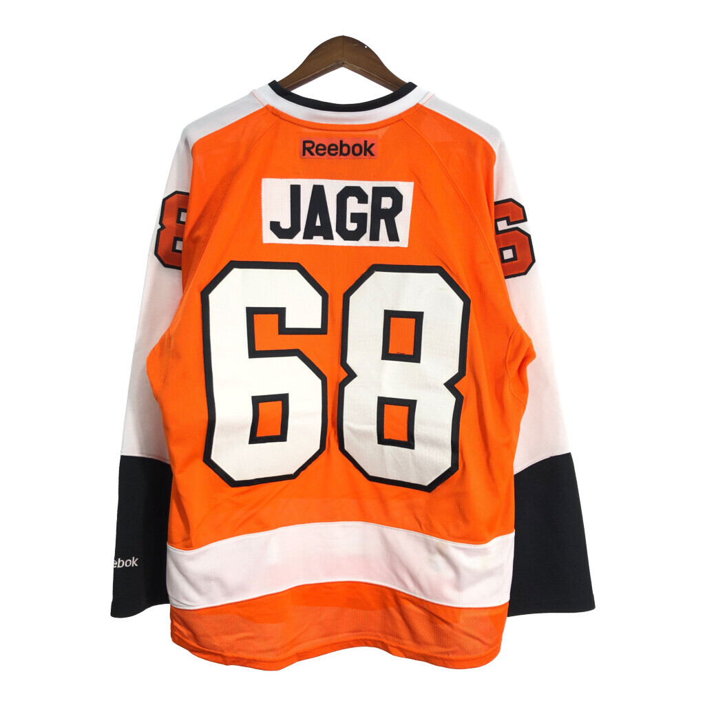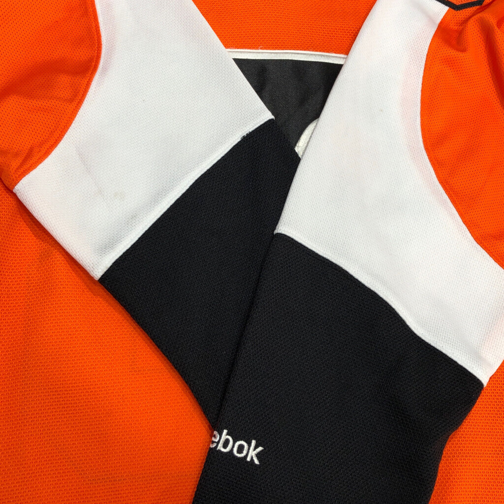 【商品管理番号】 T8797 【ブランド】 Reebok/リーボック 【サイズ】 L 【実寸サイズ】 着丈:約75cm 身幅:約65cm 裄丈:約86cm 袖下丈:約52cm 【主な素材】 表地 : ポリエステル 【色】 オレンジ 【仕様】 プロチーム、ホッケー、スポーツ 【状態】 汚れ:袖、腹部、背中、腰 特記事項:変色 |
