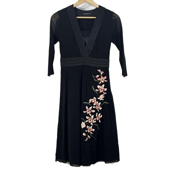 ヴィヴィアンタム VIVIENNE TAM サイズXS - 黒 レディース 七分袖/ひざ丈/チュール/刺繍/フラワー(花) 美品 ワンピース