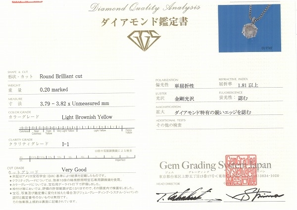 K18WG ネックレス ダイヤ 0.20 鑑定書 総重量約1.1g 約40cm 中古 美品 送料無料 | |