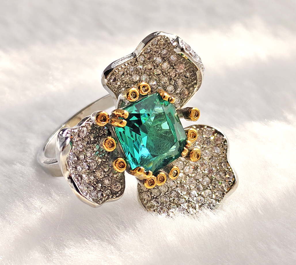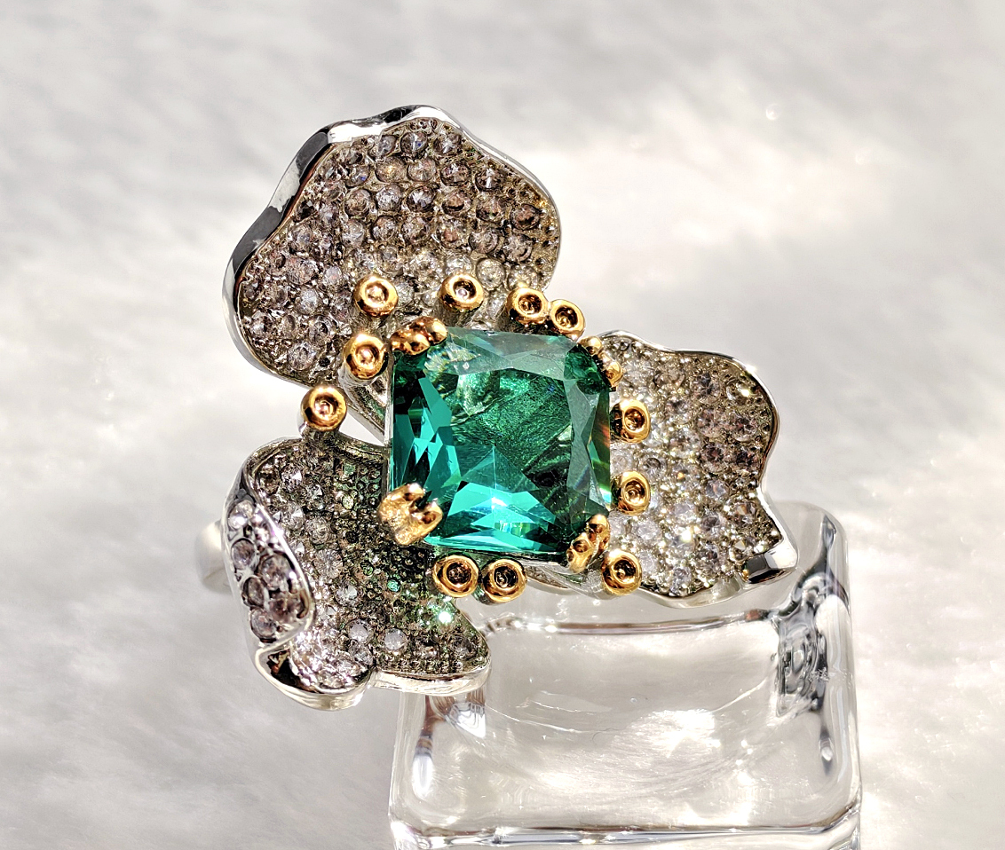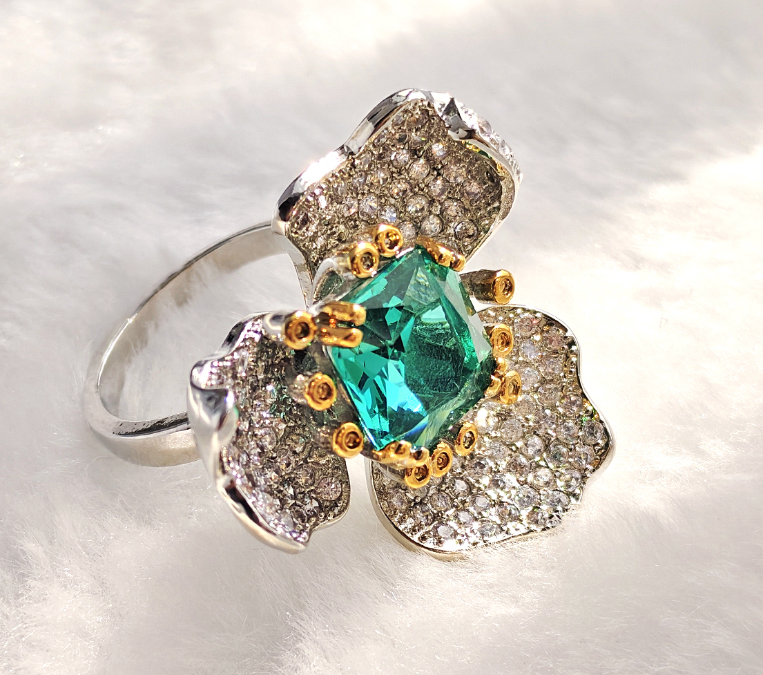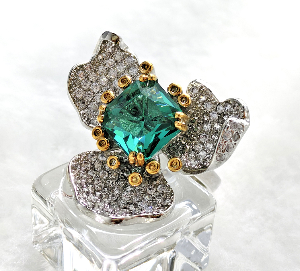 N250740◆Bigstone◆【存在感な花】キラキラ輝く*ファッション印象*豪華なリング*13号