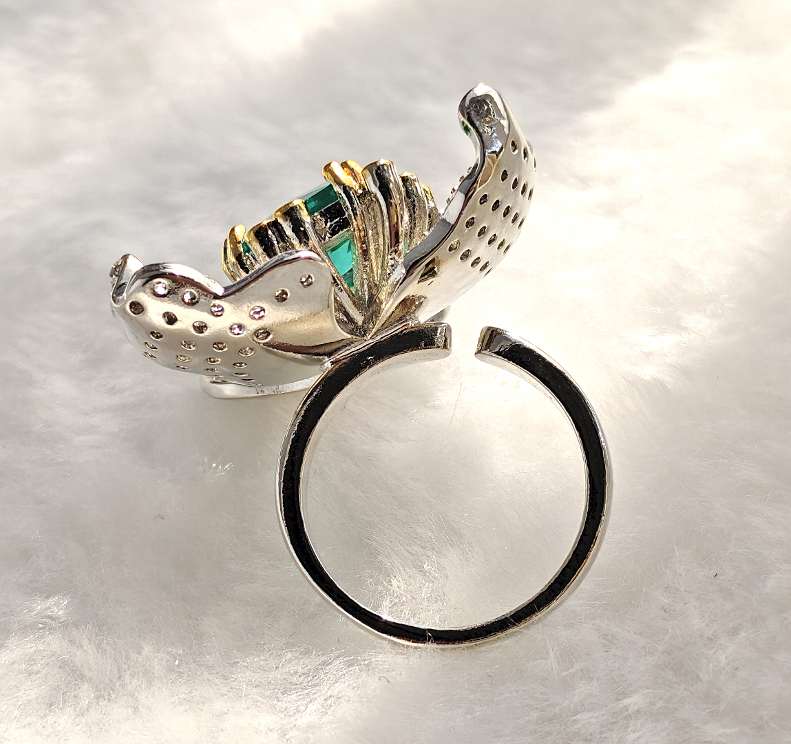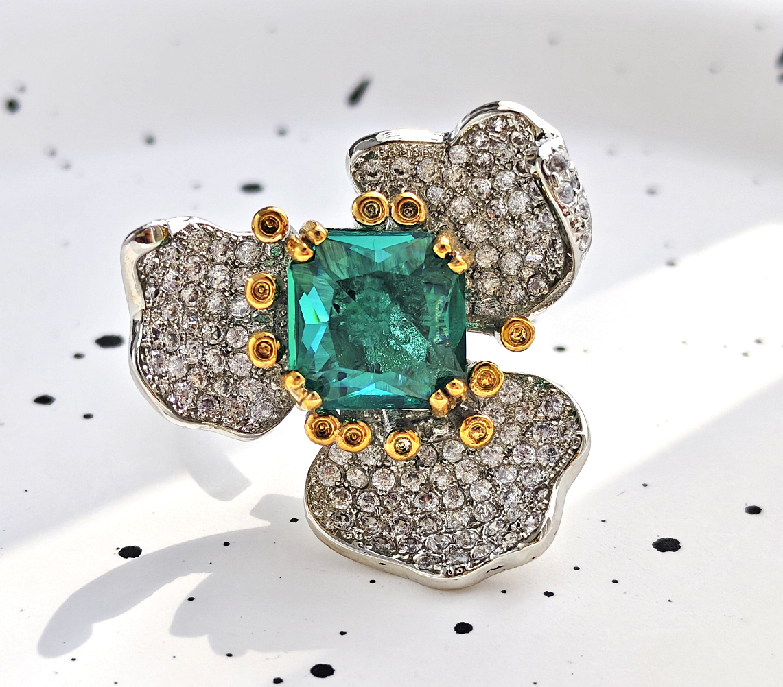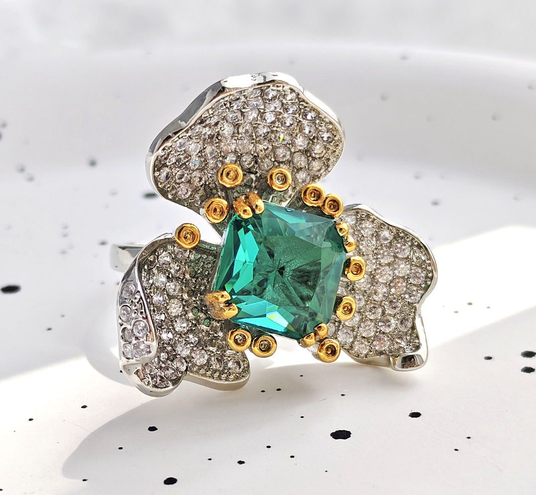 N250740◆Bigstone◆【存在感な花】キラキラ輝く*ファッション印象*豪華なリング*13号