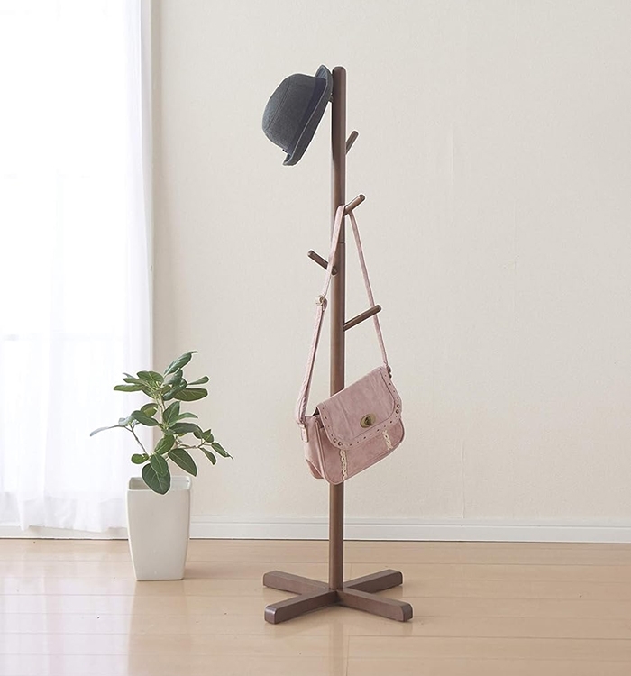 見せる収納にぴったりな天然木(ラバーウッド)のポールハンガーです。