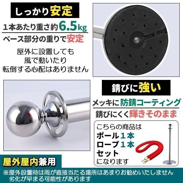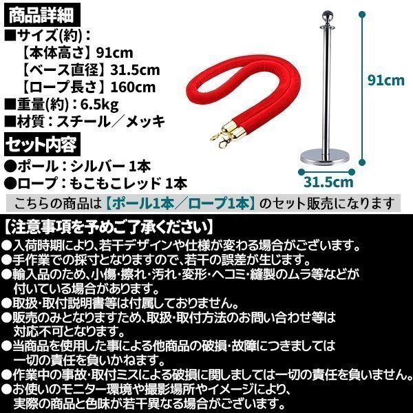 ポールパーテーション 1本 セット シルバーポール レッドロープ もこもこ ガイドポール ポール スタンド パーテーション 通路