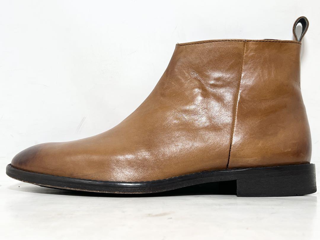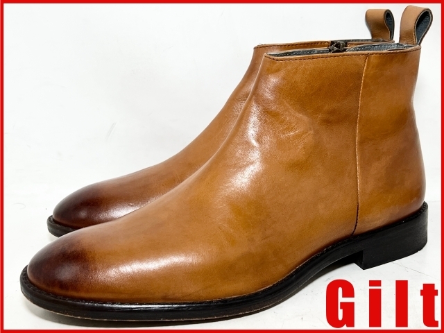 即決★良品 alfredoBANNISTER★40=約25cm レザーサイドジップブーツ アルフレッドバニスター 茶 ブラウン 本革 革靴