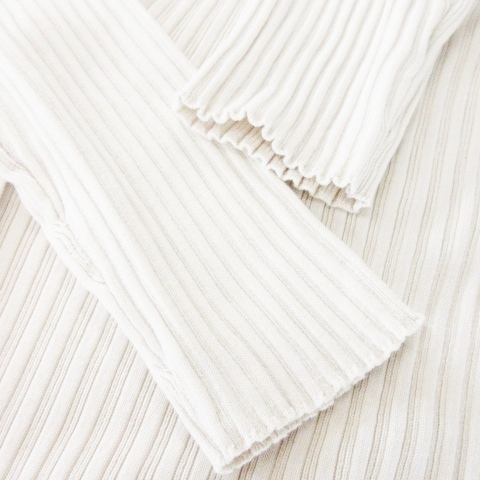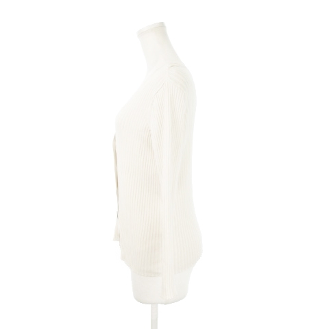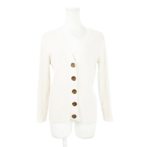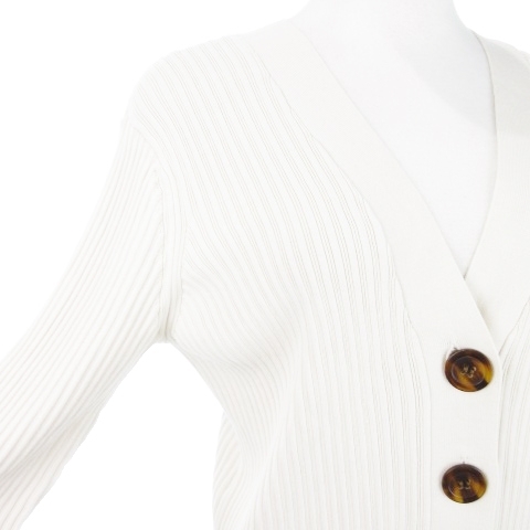 トゥモローランド TOMORROWLAND リブニットカーディガン Vネック 長袖 コットン S ベージュ /AH9 レディース