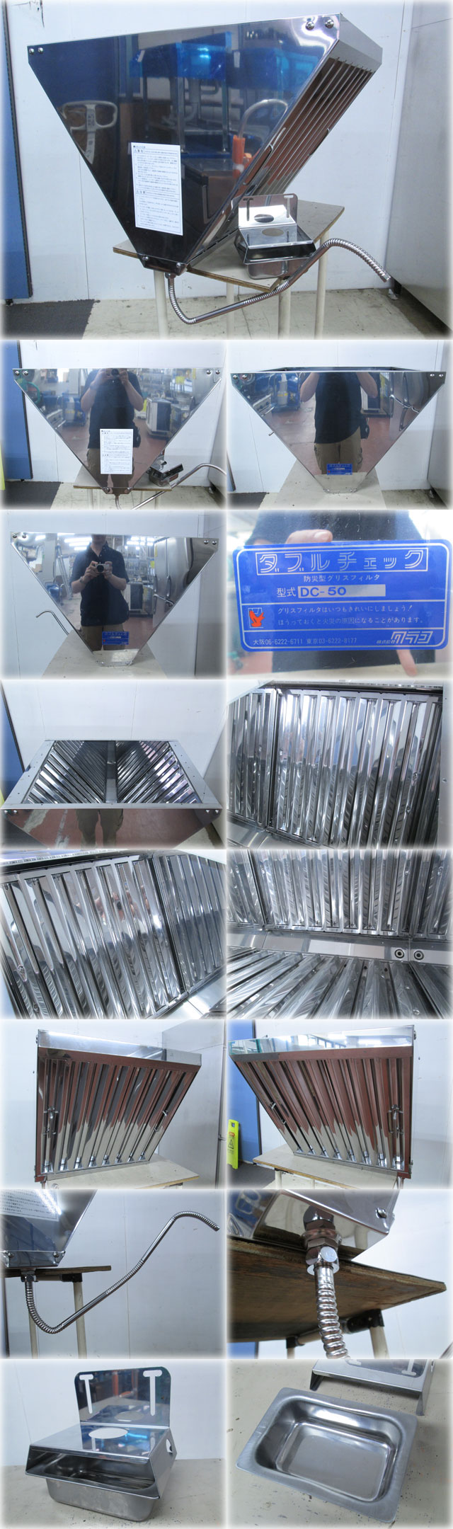 クラコ 低静圧防災型厨房排気用グリスフィルター ダブルチェック DC-50 を出品いたします。 ■特徴■ 業界No.1の販売実績が 厨房の安全と快適を応援します。 特殊な構造のチェックプレートの組合せが グリス除去率を約80%(静圧69Pa時) までアップさせました。 負圧室を設けることにより、 長時間連続使用の場合でも目詰まりしにくく、 安定した高グリス除去率と 低グリス付着率を維持します。 フィルタとチャンバーはすべてステンレス製のため、 錆に強く、長時間の使用に耐えます。 フィルタはワンタッチで分解可能なため、 手軽に洗浄できます。 東京消防庁はじめ、国内各地の火災予防条例 およびグリス除去装置に関する 技術基準に適合しており、 (社)日本厨房工業会の認定品です。 メーカーHPもご覧ください 目立った大きな傷みはなく状態良好です。 写真に写っているものが全てのセット品です。 本体以外の付属品は、 オイルカップ、フレキ管(約70cm)です。 1台単位の出品となります。 複数台ありますが同じ写真を使っての出品となります。 ラベルの位置など多少の状態の違いはご了承ください。 発送は佐川飛脚ラージサイズ宅配便でお送りします。 状況によりフレキ管は 本体から取り外して梱包する場合があります。 定価54,000円の非常に高価な商品です。 格安出品いたしますのでこの機会をお見逃しなく! |