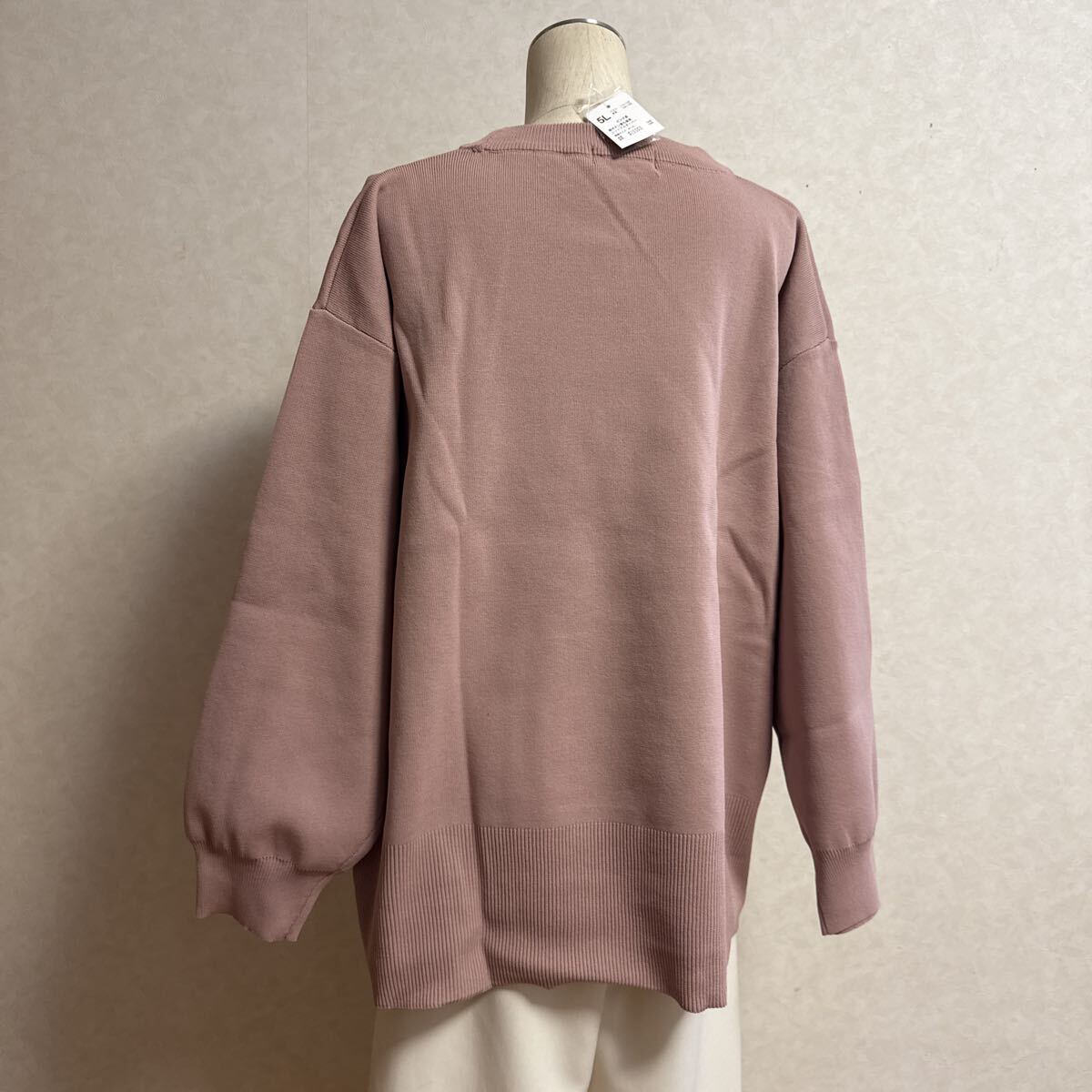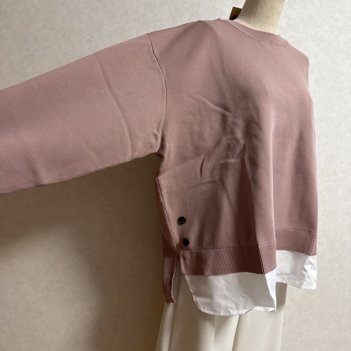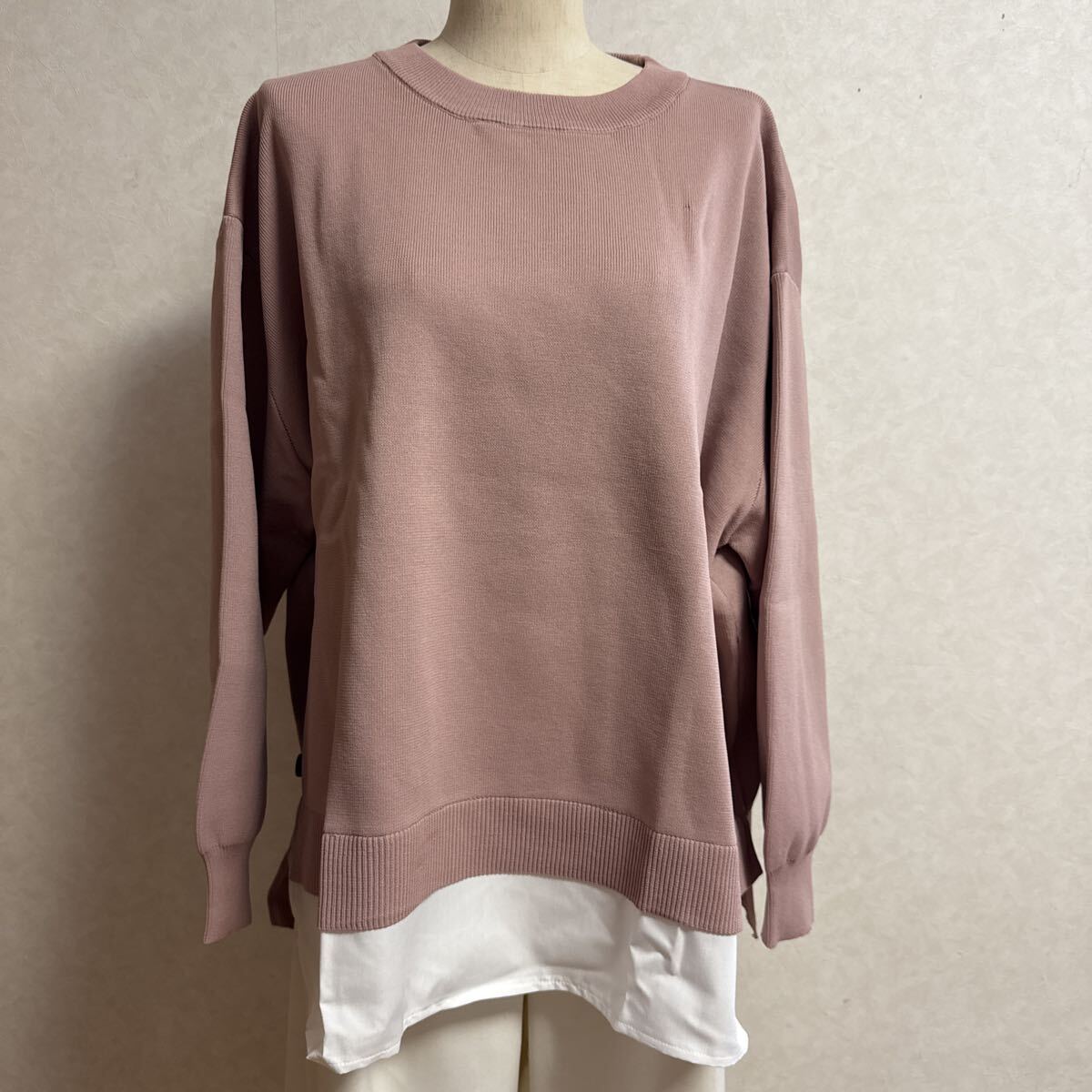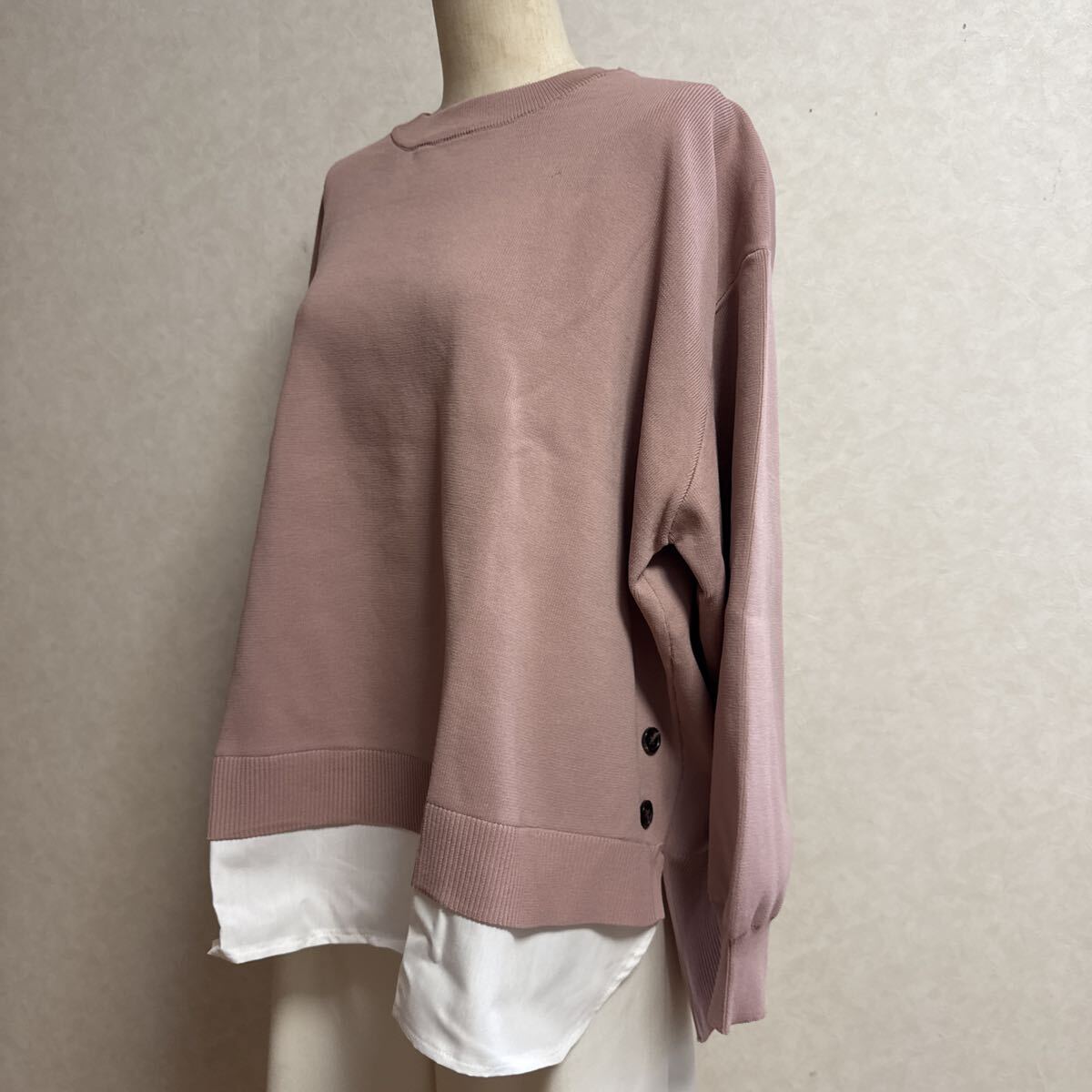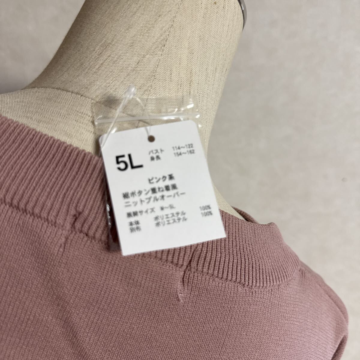 KN3240 *5L 大きいサイズ 裾ボタン重ね着風ニットプルオーバーピンク系