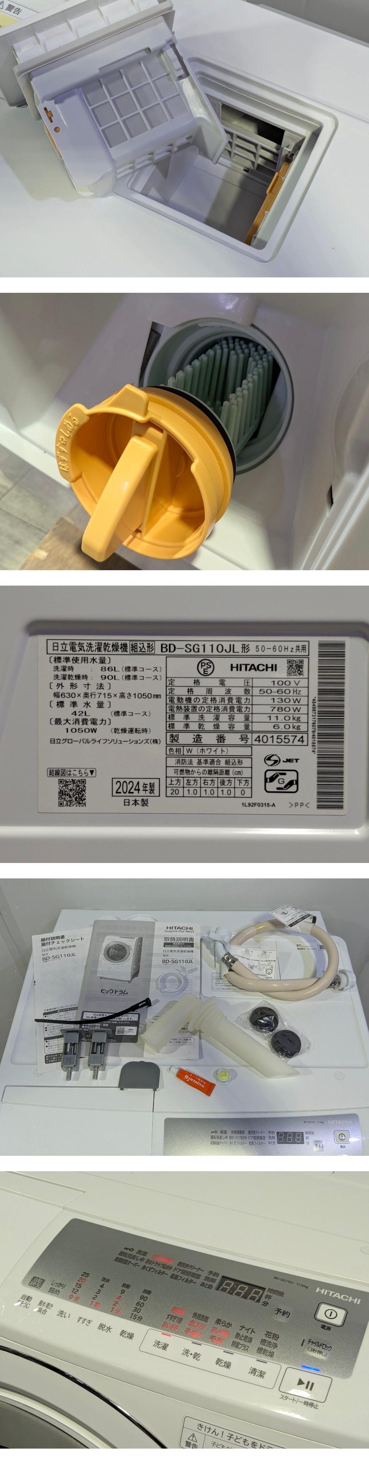 埼玉発 日立 ドラム式洗濯乾燥機 BD-SG110JL 標準洗濯容量11.0kg 2024年製 MM FK | |||||||||||||||||||||||||||||||||||||||||||||