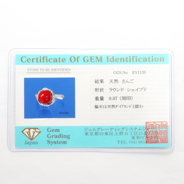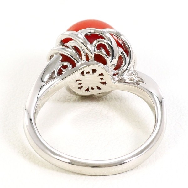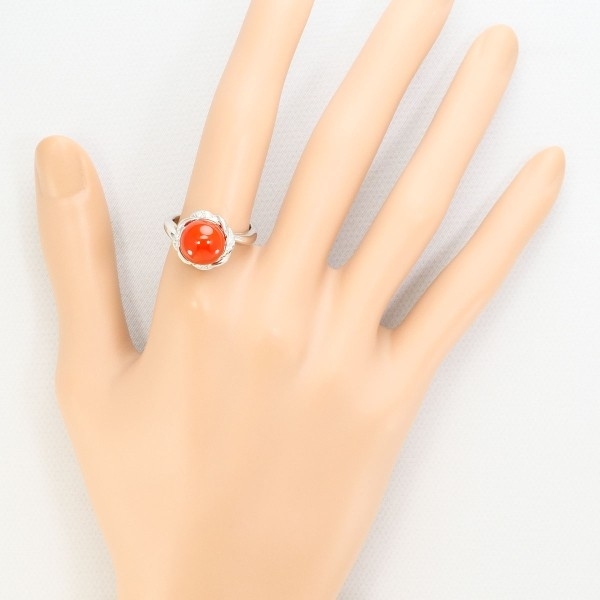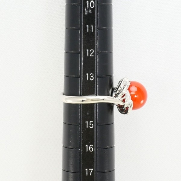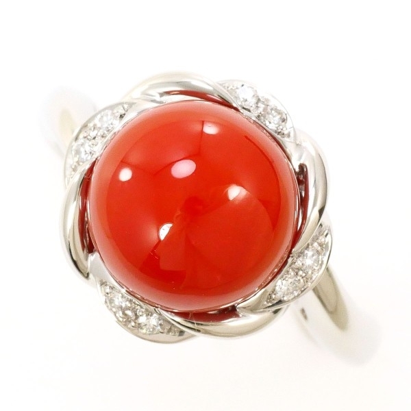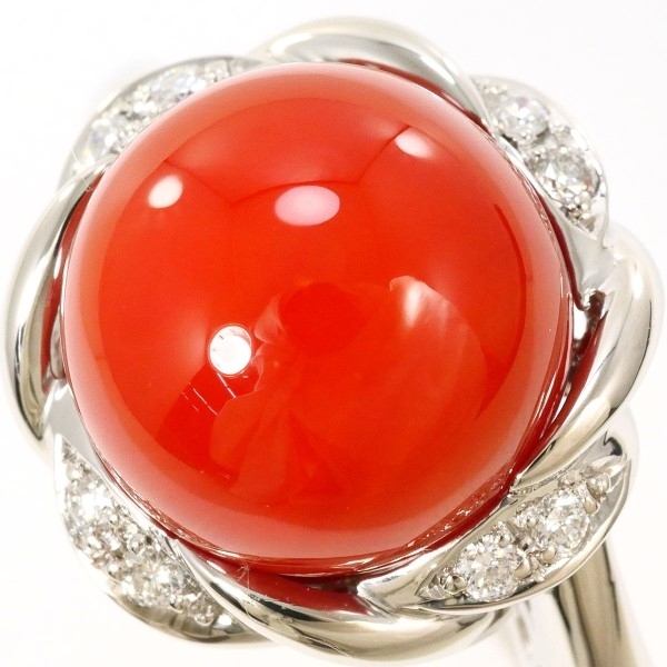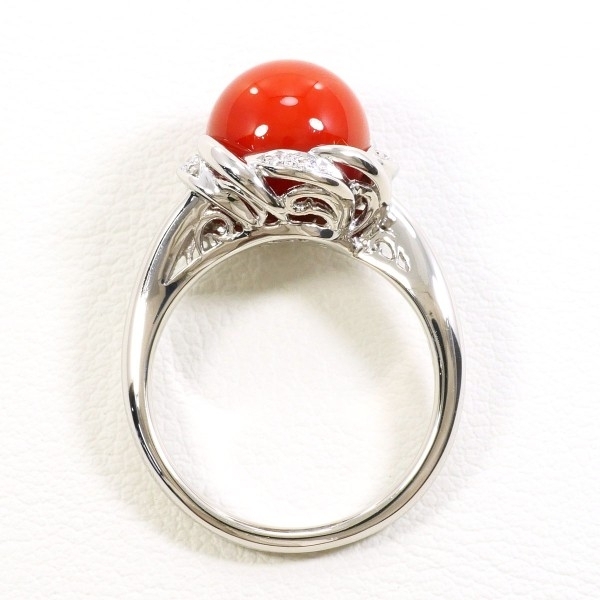 PT900 リング 指輪 14号 サンゴ ダイヤ 0.07 カード鑑別書 総重量約9.3g 中古 美品 送料無料 | |