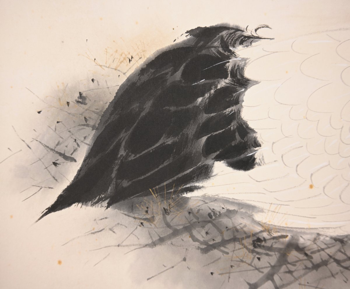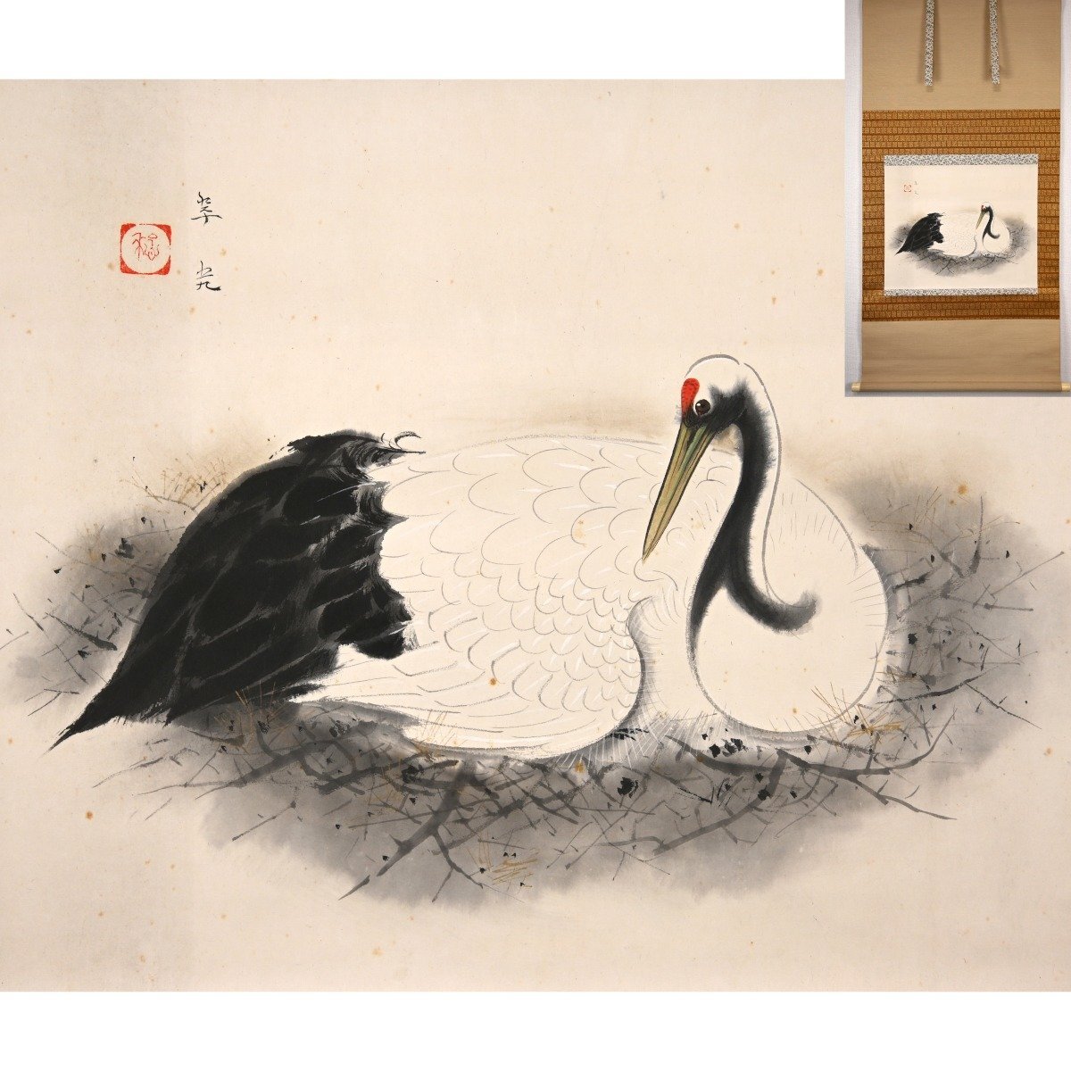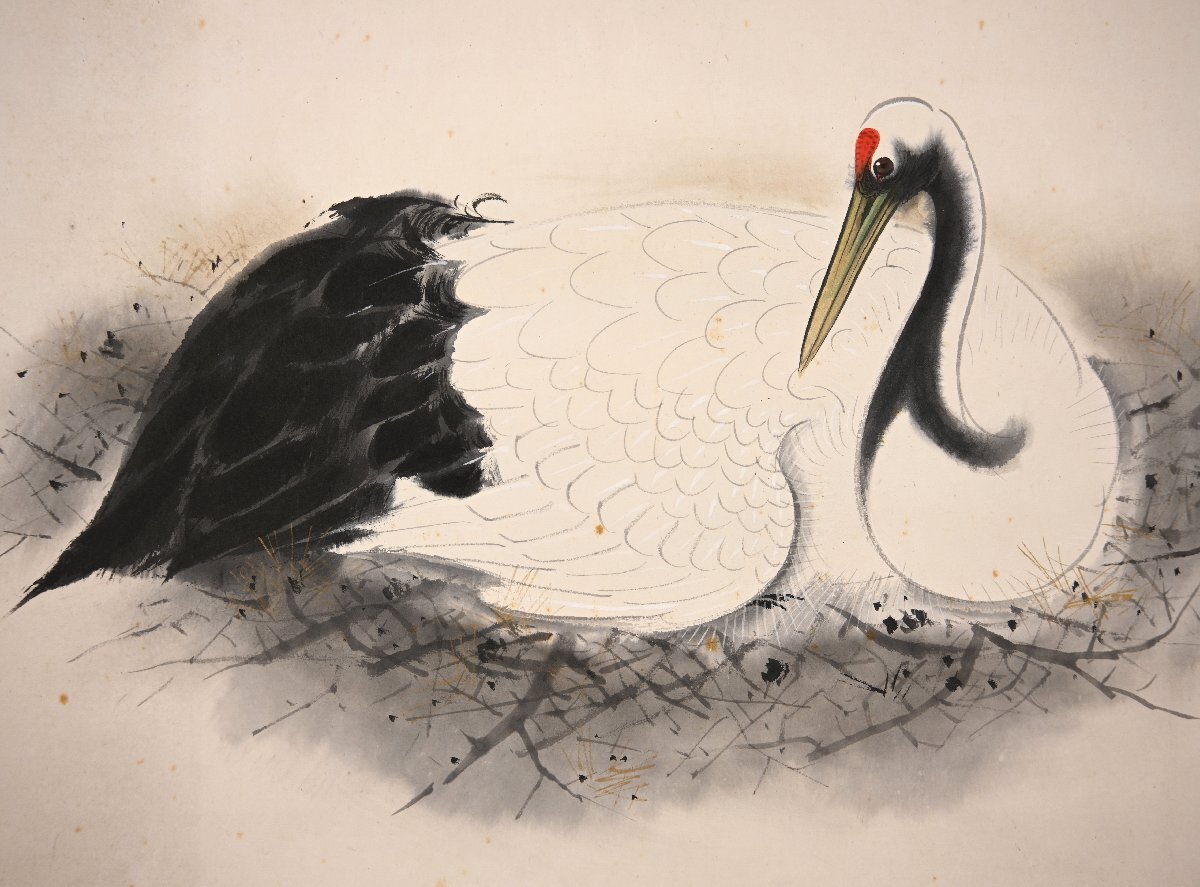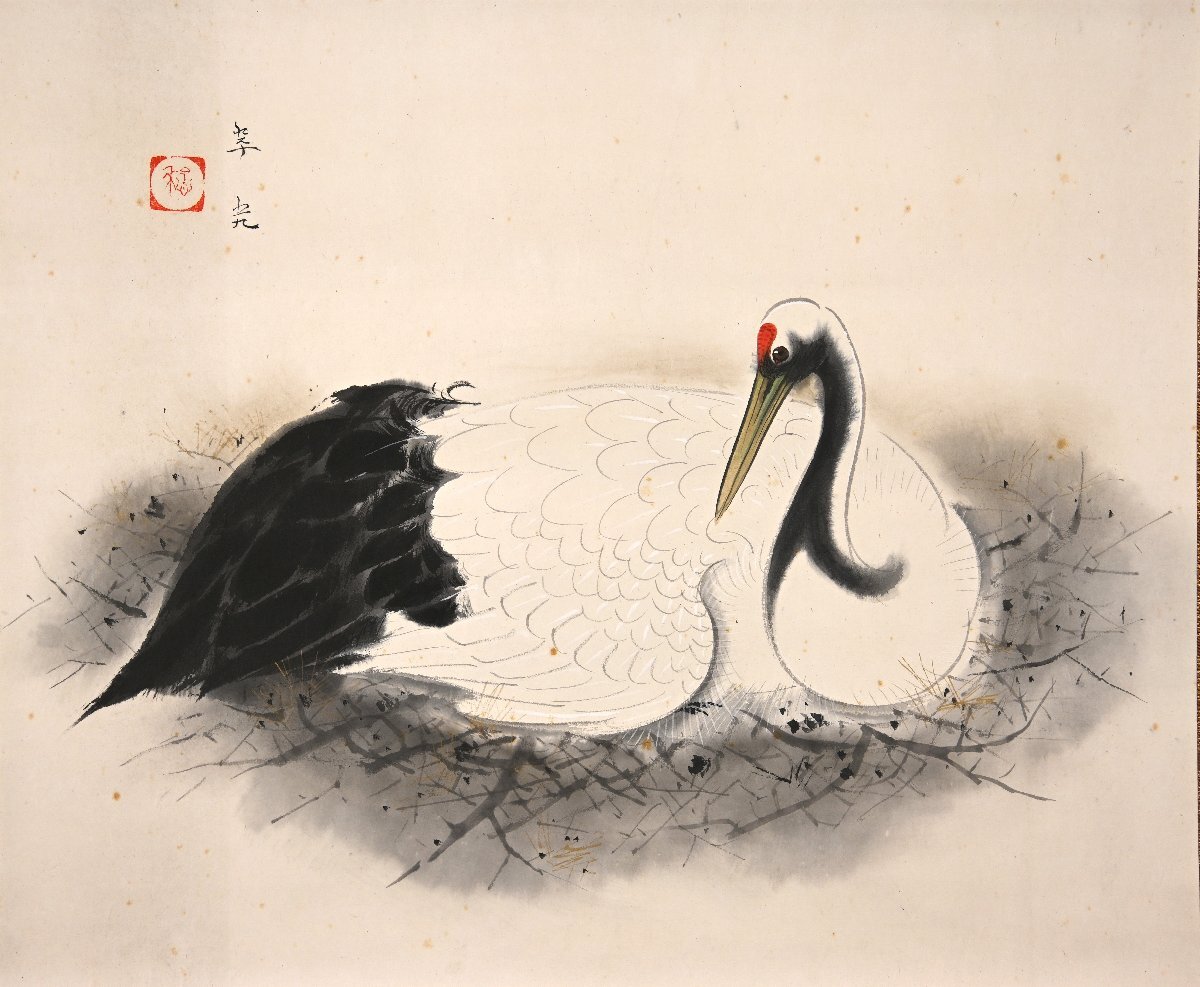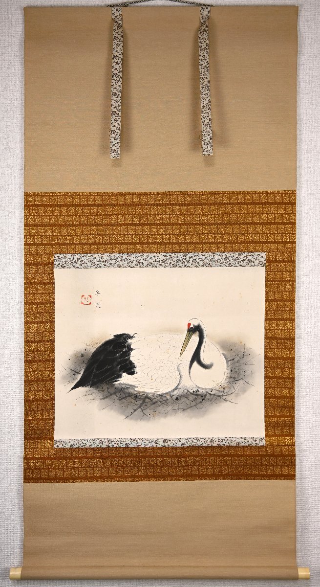 福田翠光「巣籠」共箱 肉筆紙本 花鳥図 日本画 掛軸【華芳】