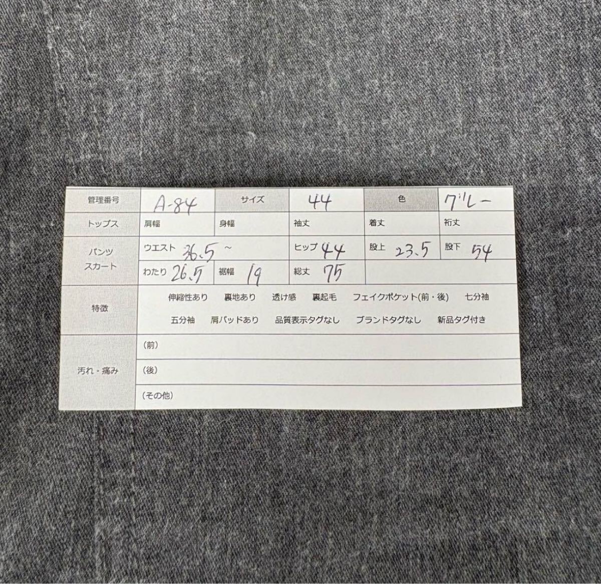 (素人採寸の為、若干の誤差はご了承ください。)
