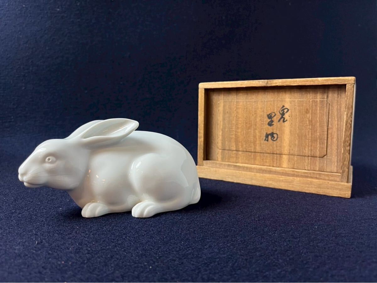人間国宝 十三代 酒井田柿右衛門 (作) 兎 置物 有田焼 白磁 美品 古陶磁 陶磁器 重要無形文化財 卯 うさぎ 人形 インテリア