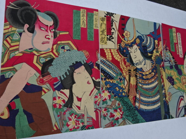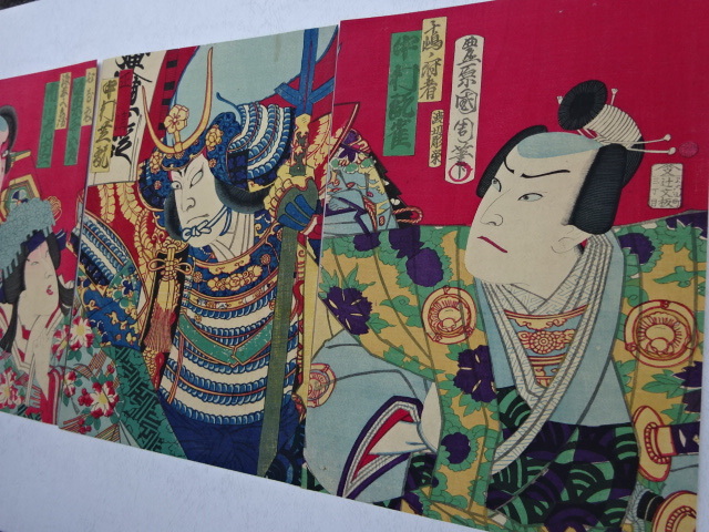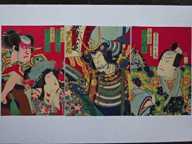 浮世絵 版画 真作 江戸時代末期 最後の役者絵師 豊原国周 3枚続
