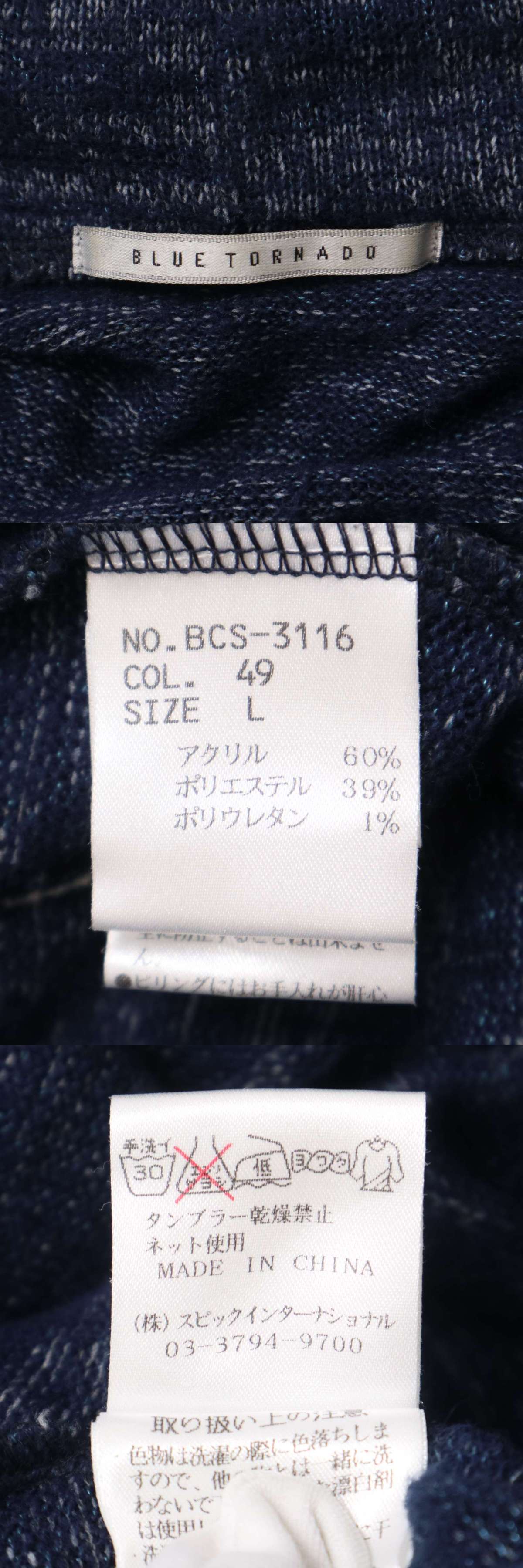 BLUE TORNADO トルネードマート 秋冬 メランジ ニット★ プルオーバー パーカー Sz.L メンズ 紺 ネイビー