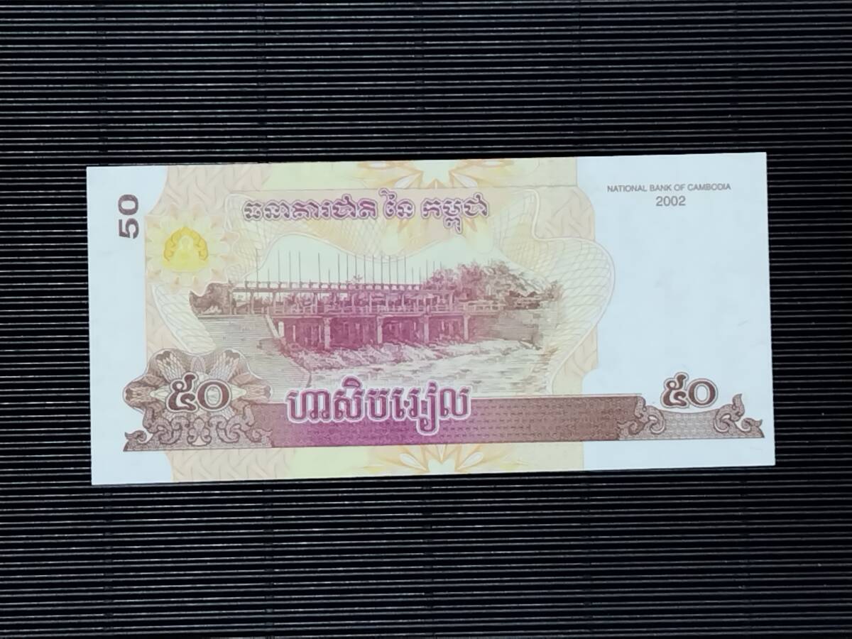カンボジア 50 Riels札   コレクション向きのピン札  2002年 甘い未使用~未使用  ダム p-52  #8579329