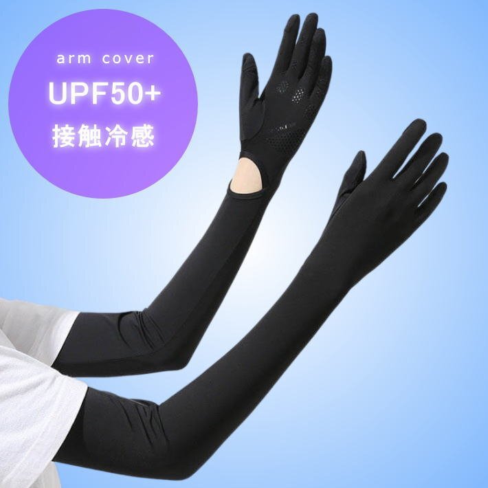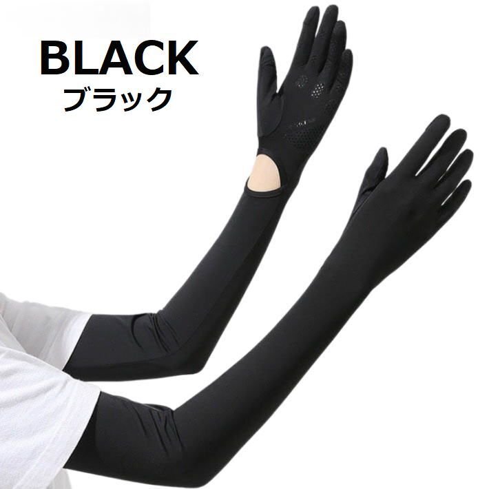 【超冷感】アームカバー UPF50+ UVカット レディース 指先まで 日焼け止め 腕カバー 冷感 7987082 ブラック 新品 1円 スタート