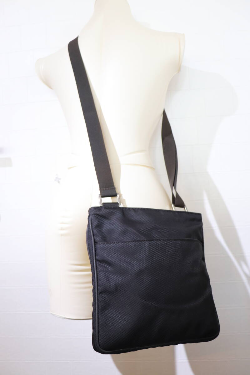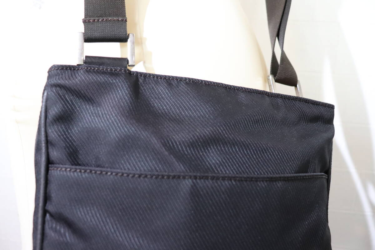 即決 DUNHILL ダンヒル クロスハンドル スクウェア型 ナイロン×レザー ミニショルダーバッグ サコッシュ ポシェット ブラウンブラック