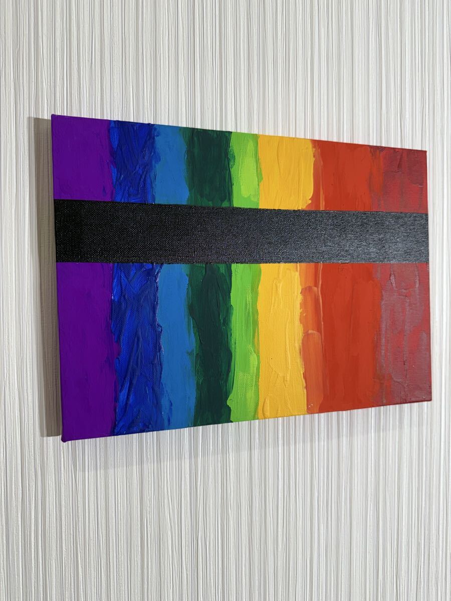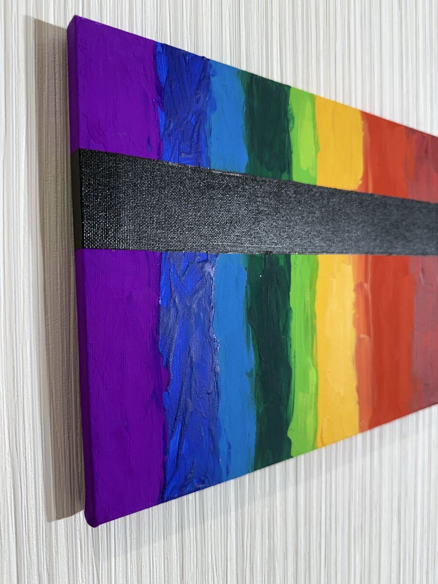 レインボーカラーのストライプデザインのモダンアート。