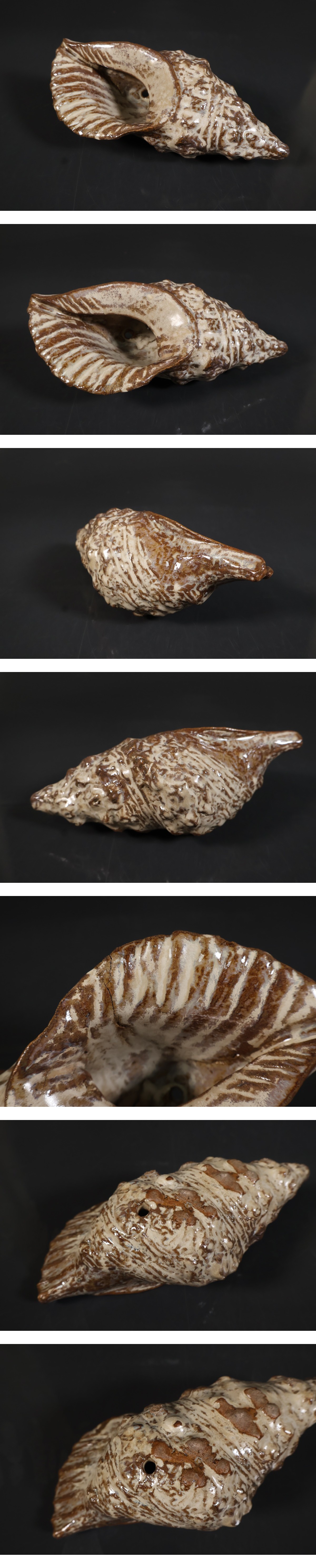 【和】(A3408) 時代古作 古唐津 高取 ほら貝形掛け花生 花瓶